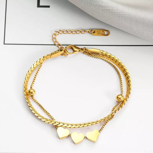 BRAZALETE ELEGANTE CORAZONES MINIMALISTAS