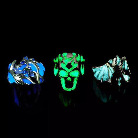 ANILLOS PUNK GÓTICO BRILLAN EN LA OSCURIDAD