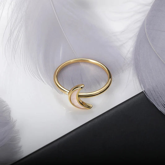 ANILLO LUNAR PIEDRA ÓPALO BLANCO MINIMALISTA 👑