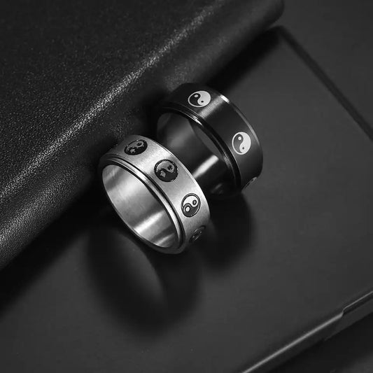 ANILLO GIRATORIO DISEÑO YIN YANG EN ACERO INOXIDABLE