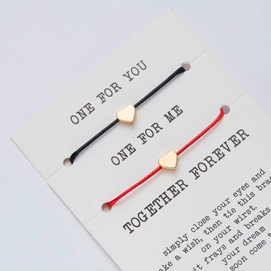 PULSERA HILO ROJO INFINITO Y CORAZÓN CON DEDICATORIA