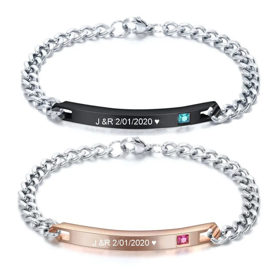 BRAZALETES EN PAREJA PERSONALIZABLE CIRCONIA CÚBICA