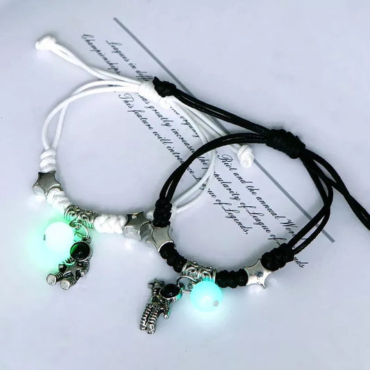 PULSERAS DE PAREJA BRILLA EN LA OSCURIDAD KAWAII CON EXHIBIDOR