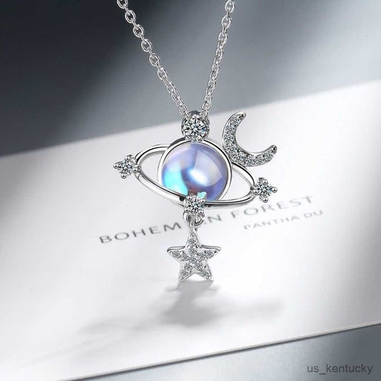 COLLAR SATURNO LUNA Y ESTRELLA MINIMALISTA CRISTALES INSCRUSTADO