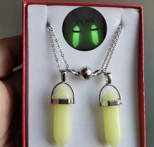 PAR COLLARES DE CUARZO BRILLA EN LA OSCURIDAD IMAN
