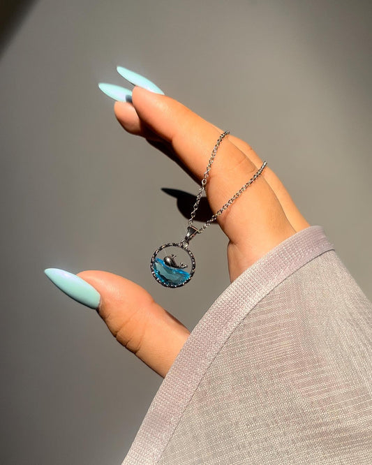 COLLAR OLA Y BALLENA MINIMALISTA MAR AZUL