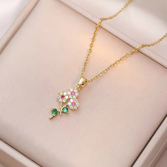 COLLAR RAMO DE ROSAS CRISTALES MINIMALISTA ELEGANTE