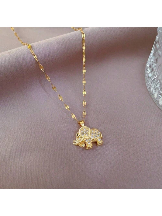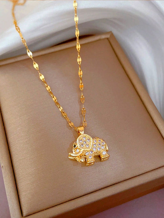 COLLAR ELEFANTE DE LA SUERTE MINIMALISTA CRISTALES DE CIRCONIA