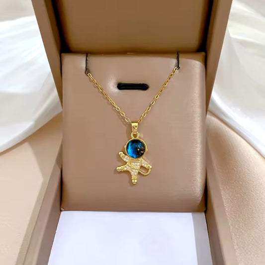 COLLAR ASTRONAUTA EN LUNA CIELO ESTRELLADO ELEGANTE CRISTAL DE CIRCONIA