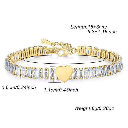 BRAZALETE CRISTALES INCRUSTADOS DIJE CORAZÓN SOLIDO PERSONALIZABLE