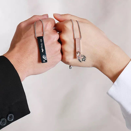 BRAZALETES LETRAS E INICIALES A JUEGO PLACA PERSONALIZADA MINIMALISTAS PAREJA