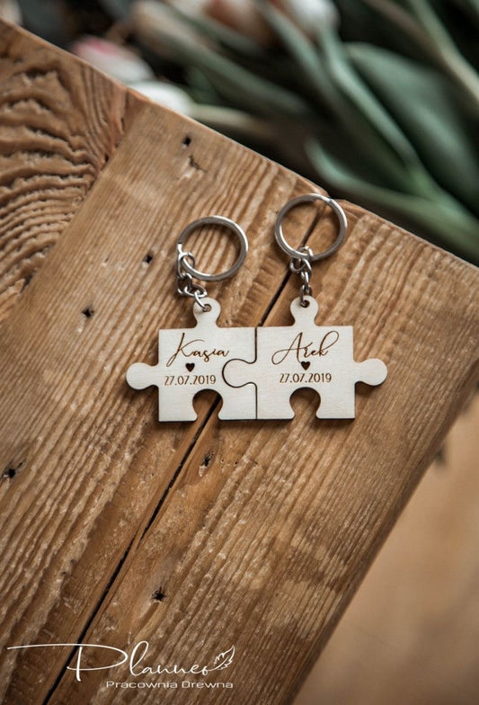 LLAVEROS MINIMALISTAS ROMPECABEZAS EN MADERA PAREJAS