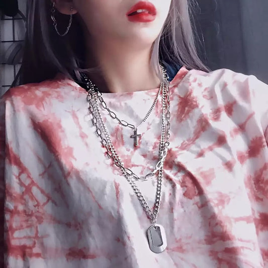 COLLAR DOBLE CAPA CRISTAL DE ZIRCONIA , CUBANA MINIMALISTA