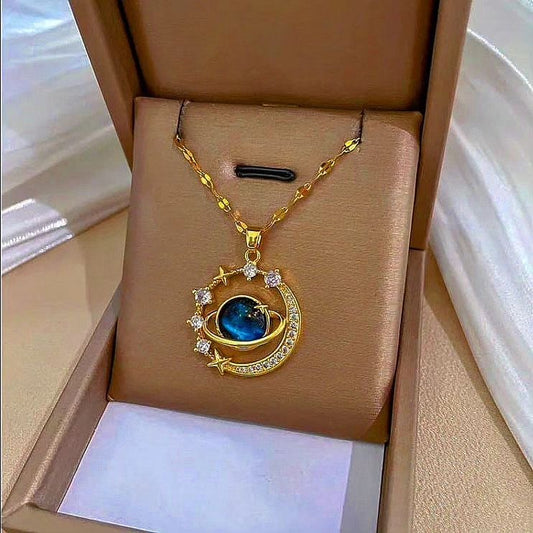 COLLAR SATURNO ENCERRADO CIELO ESTRELLADO ELEGANTE CRISTALES DE CIRCONIA