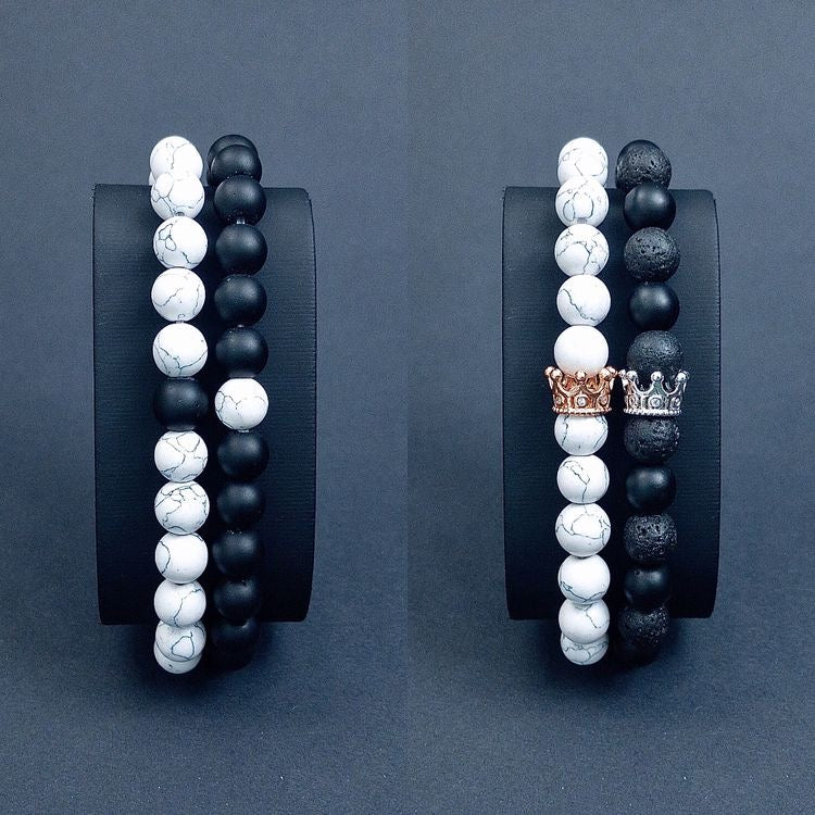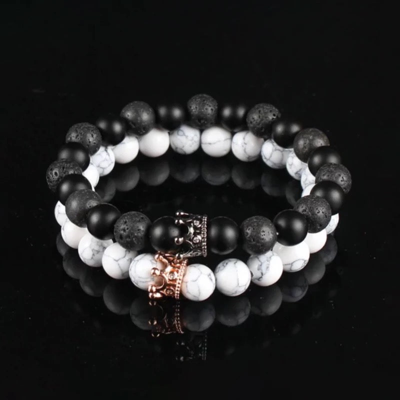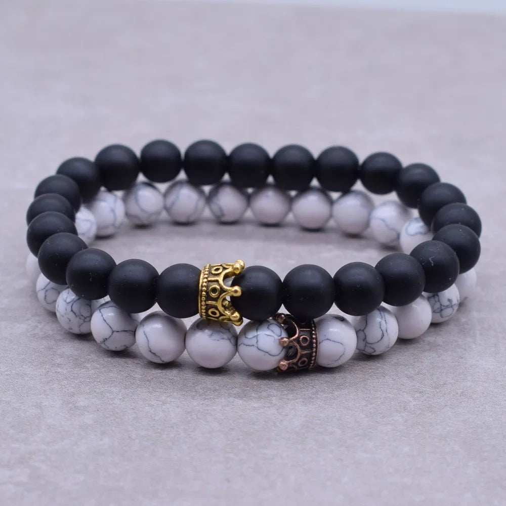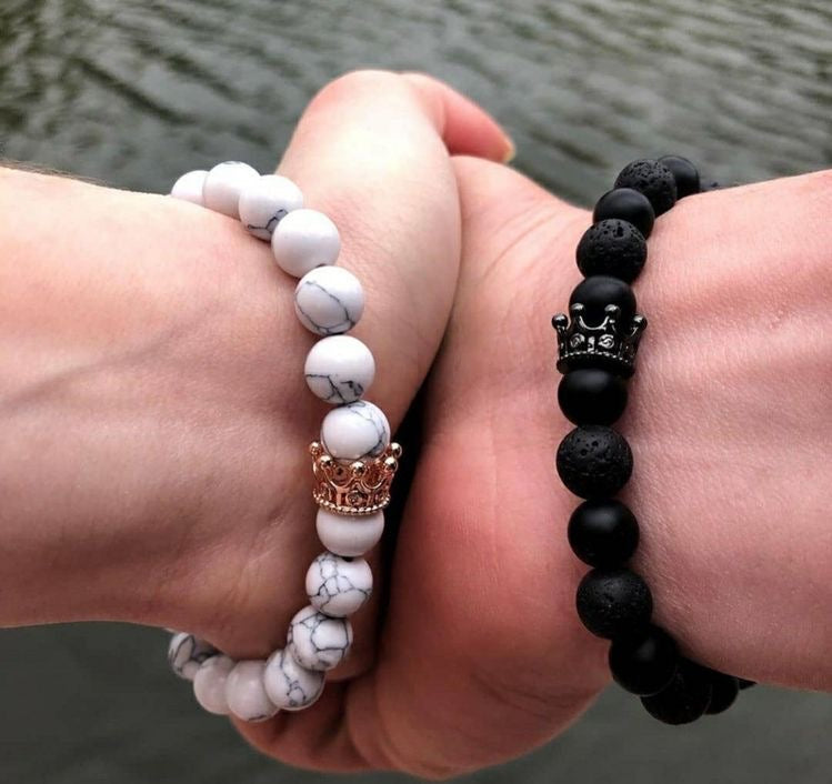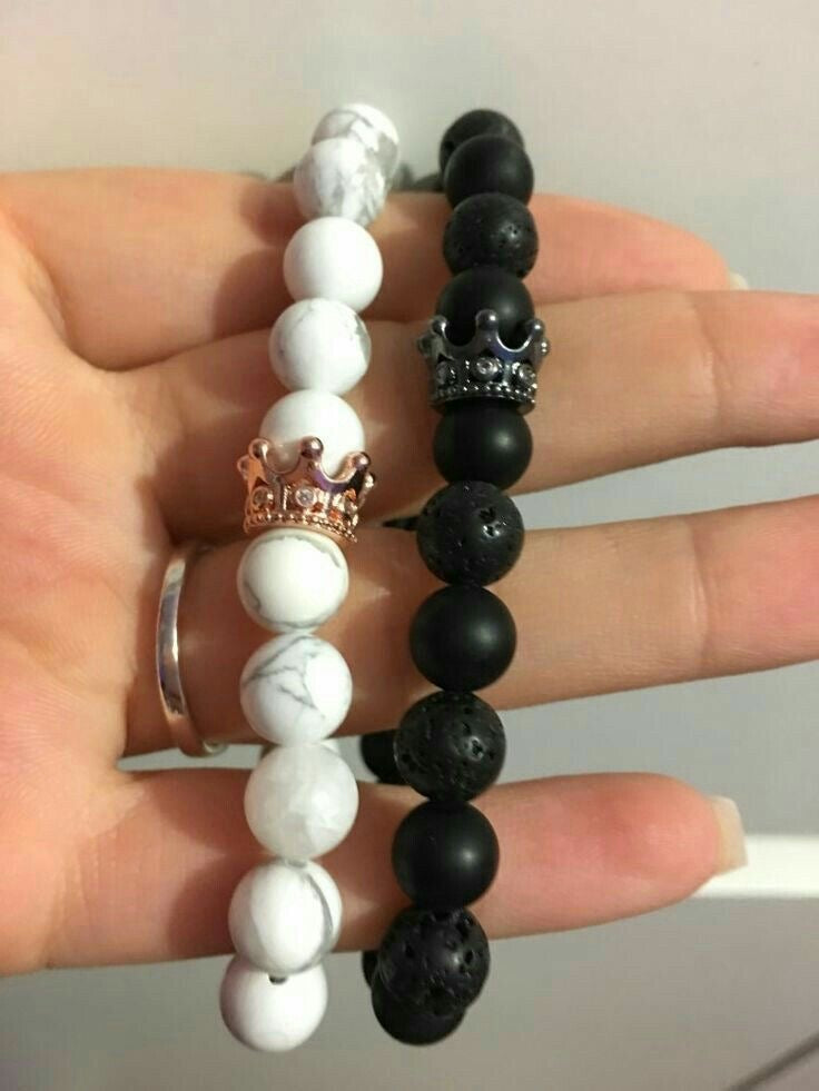 BRAZALETES KING & QUEEN PIEDRAS PRECIOSAS CORONA SU REY & SU REINA