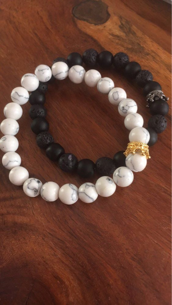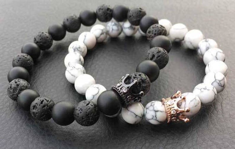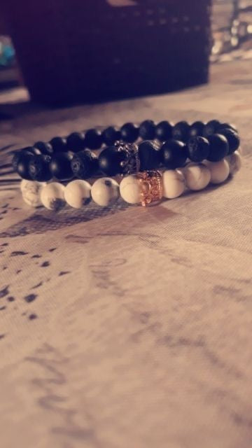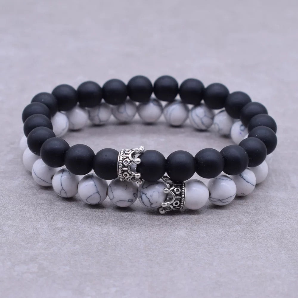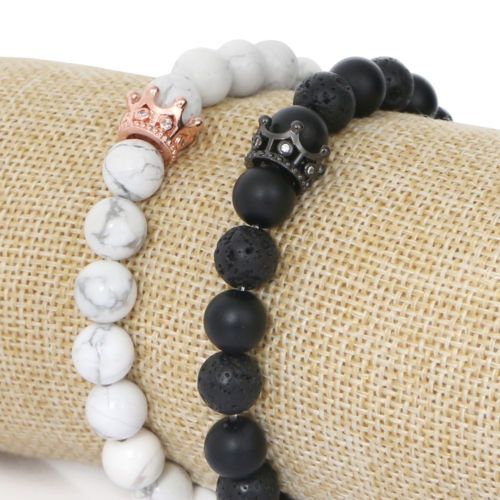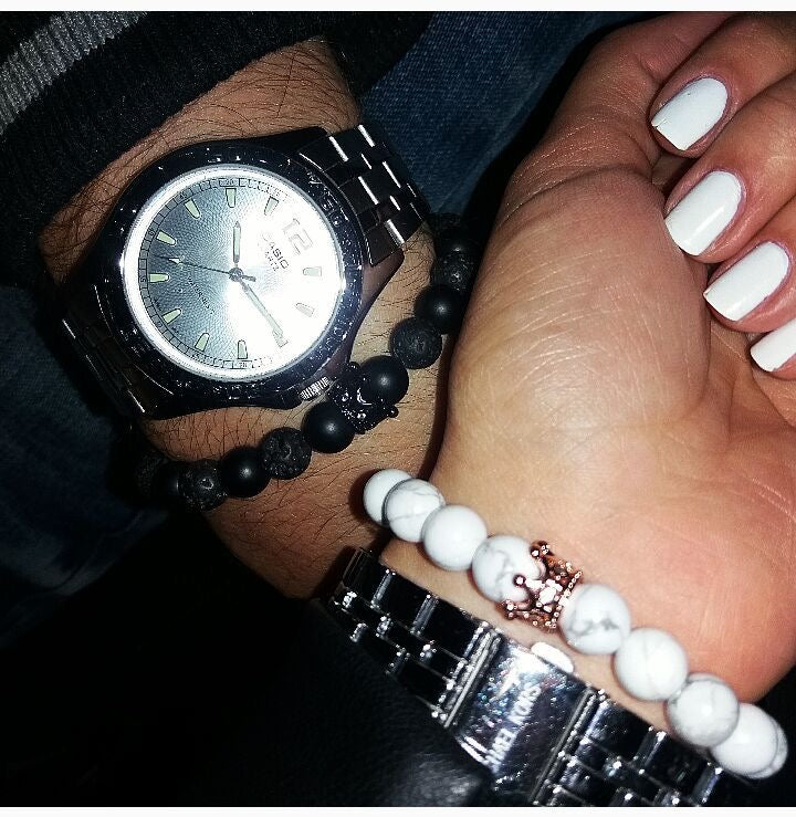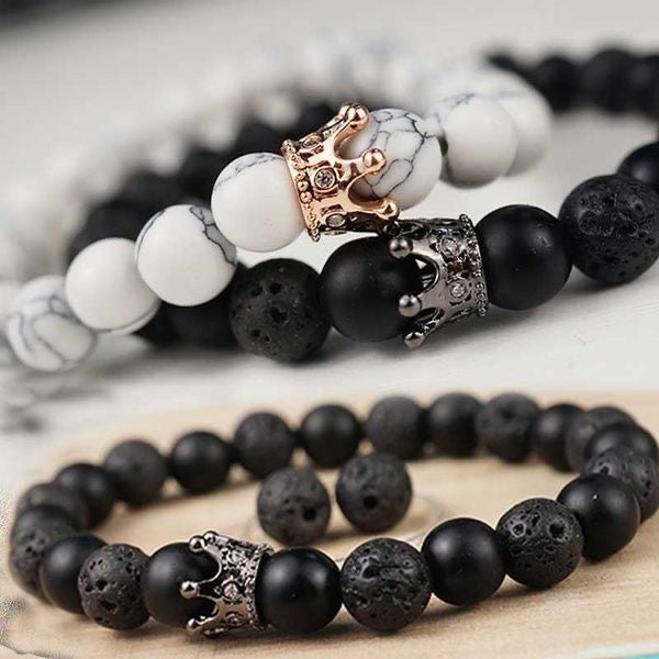BRAZALETES KING & QUEEN PIEDRAS PRECIOSAS CORONA SU REY & SU REINA
