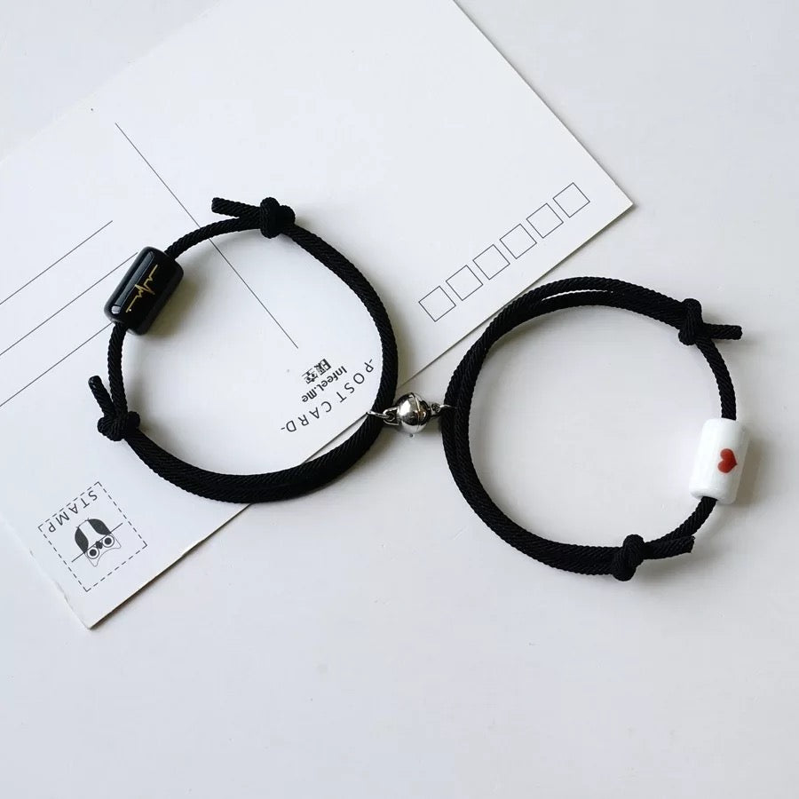 Descripción: Brazaletes magnéticos ideal para regalar a esa persona especial. Este par de brazaletes de promesa tiene un diseño magnético. Una vez colocados de cerca, estarán conectados entre sí, representando la intimidad entre tú y tu personita especial.•