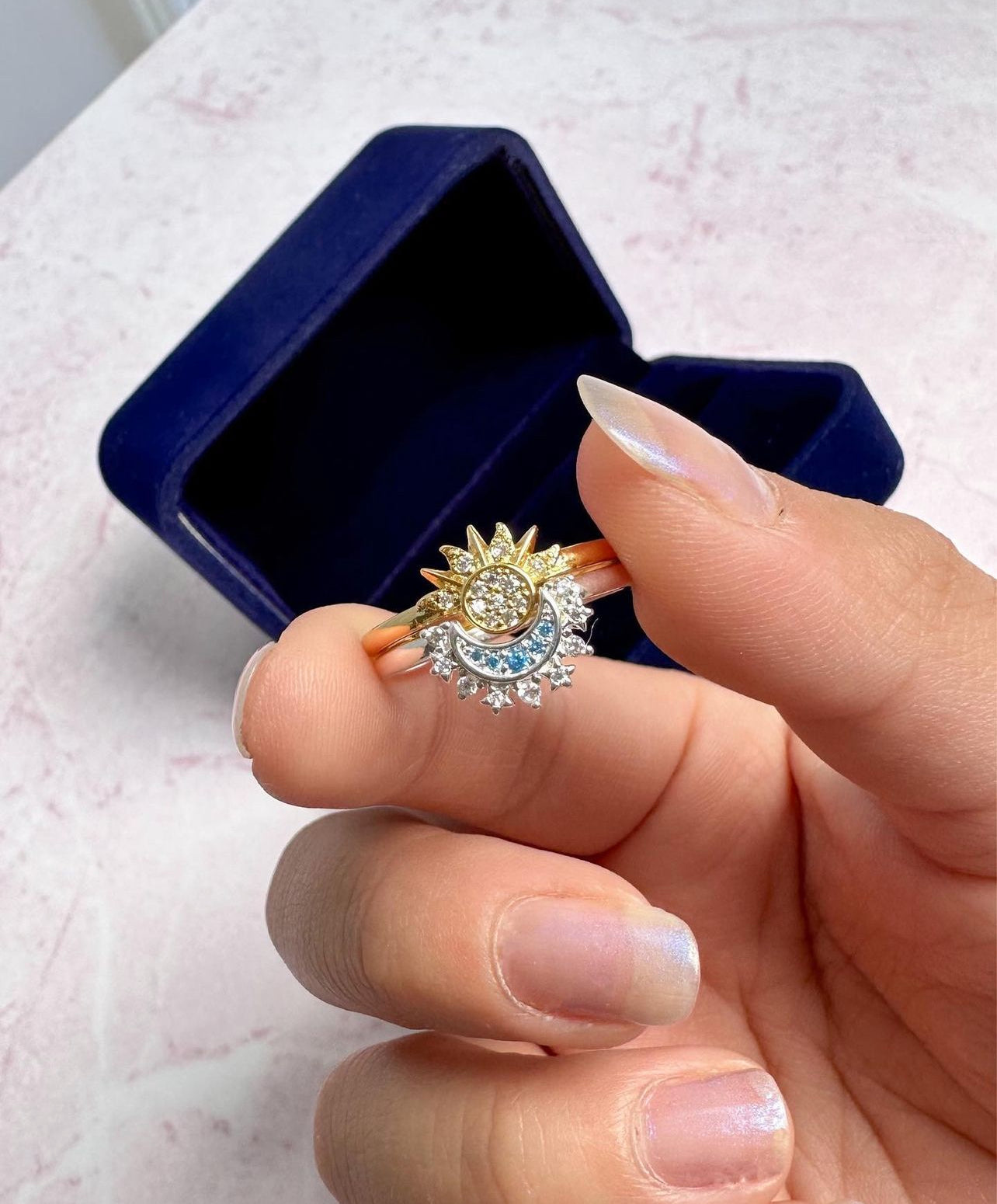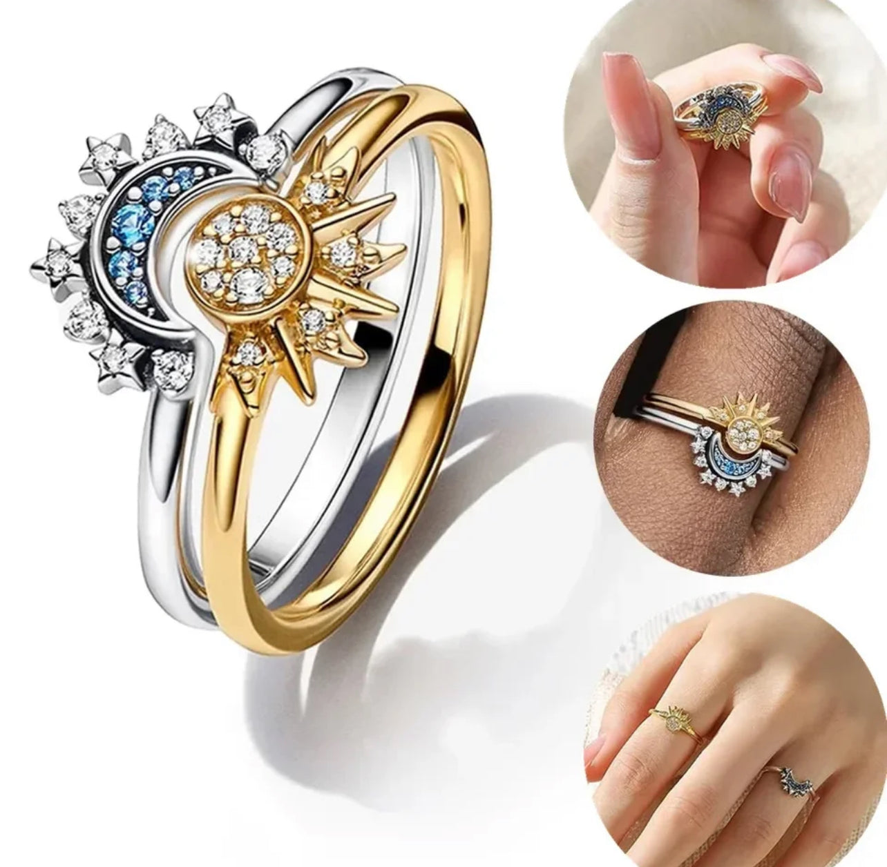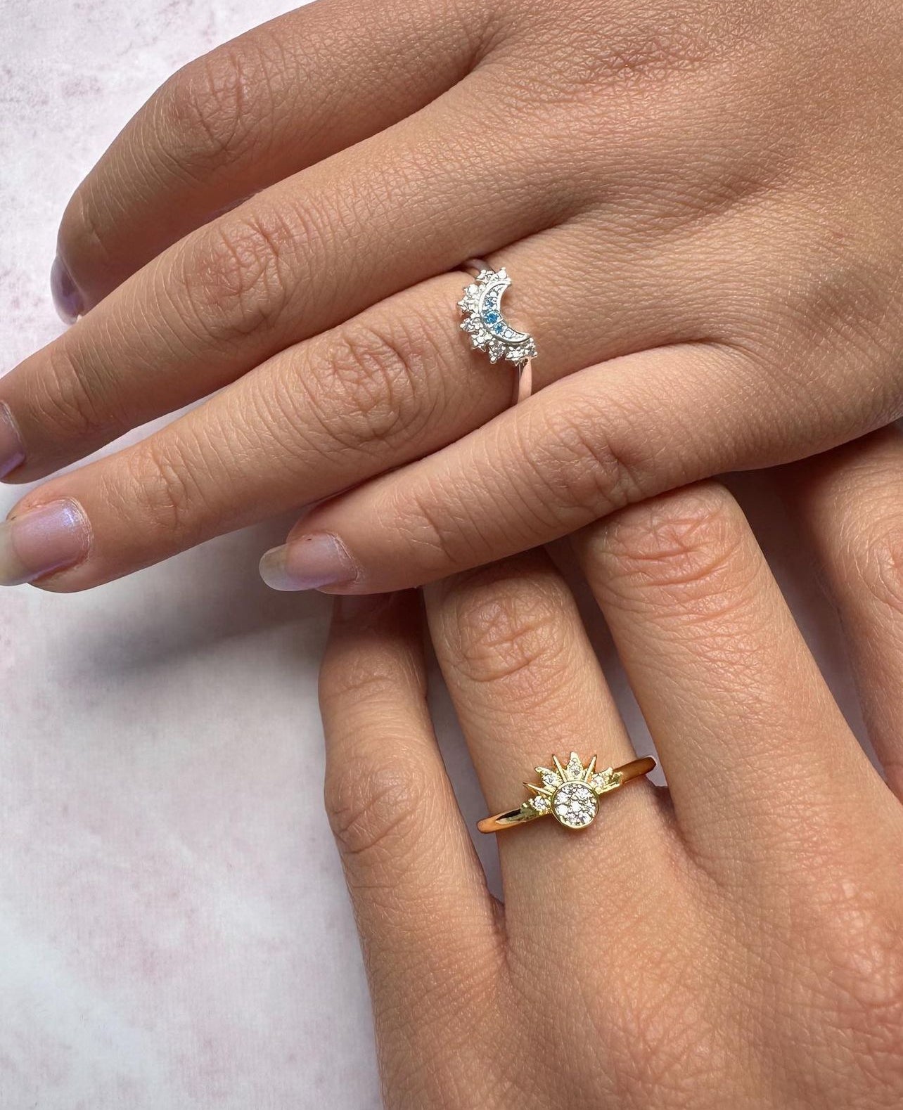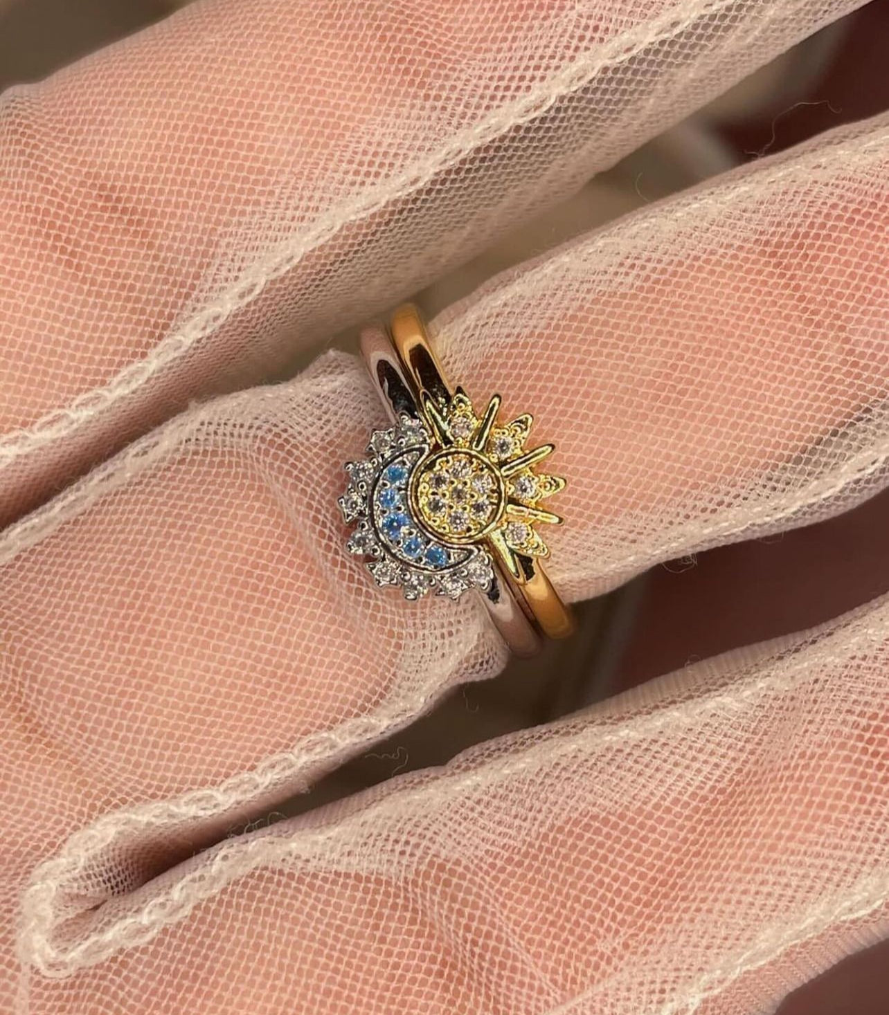 ANILLOS PROMESA SOL & LUNA CELESTIAL CRISTALES DE CIRCONITA