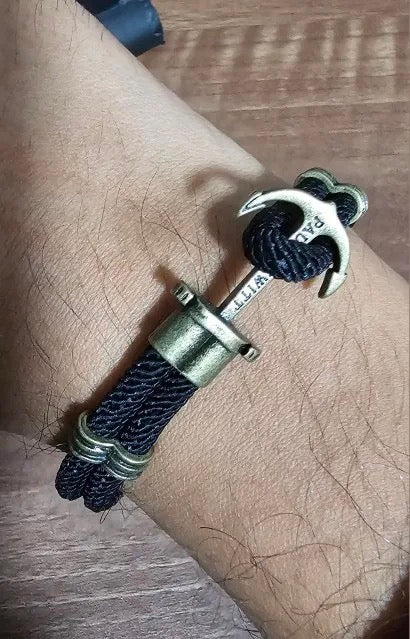 Descripción: Hermoso Brazalete con Dije Náutico , dije de acero vintage & Pulsera de Leather / cuero .
