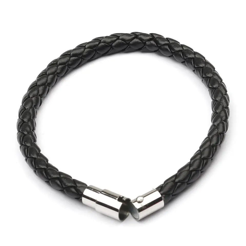 BRAZALETE CUERO TRENZADO NEGRO MATTE
