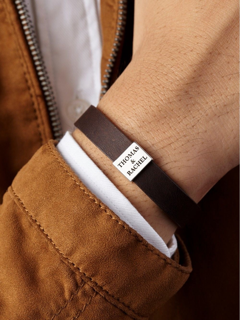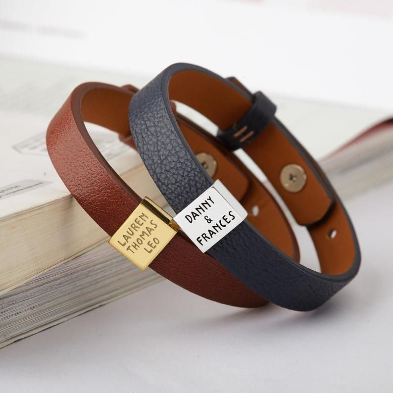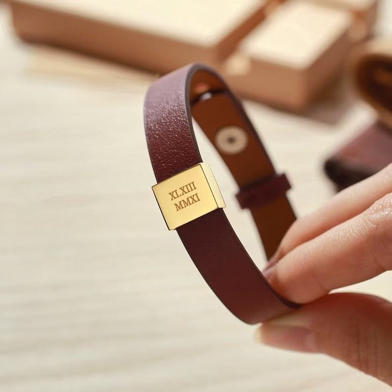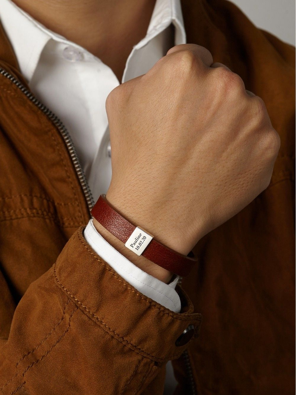 BRAZALETE CORREA DE CUERO LEATHER VARIAS PLACAS PERSONALIZABLES