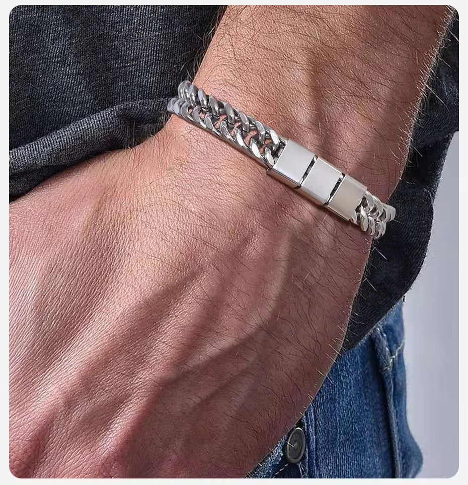 BRAZALETE ESTILO CUBANA ACERO VARIAS PLACAS PERSONALIZABLES