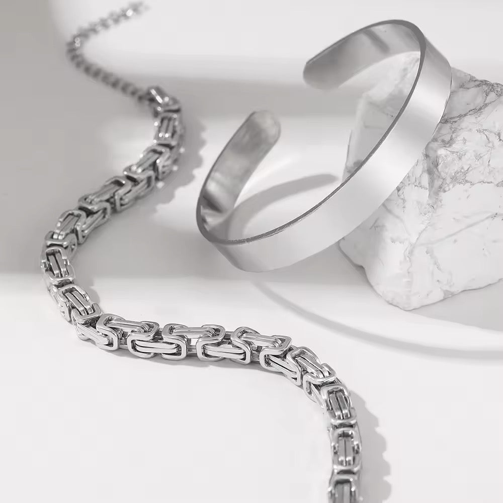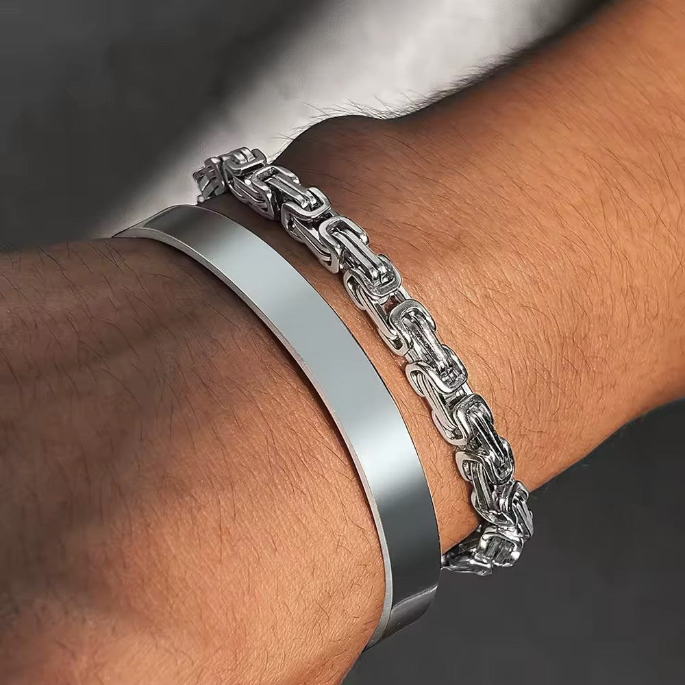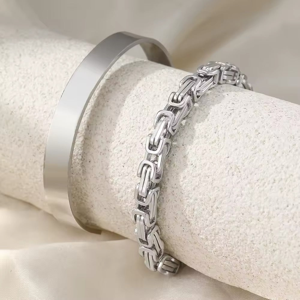 BRAZALETES ACERO PUNK ELEGANTE PLATEADOS