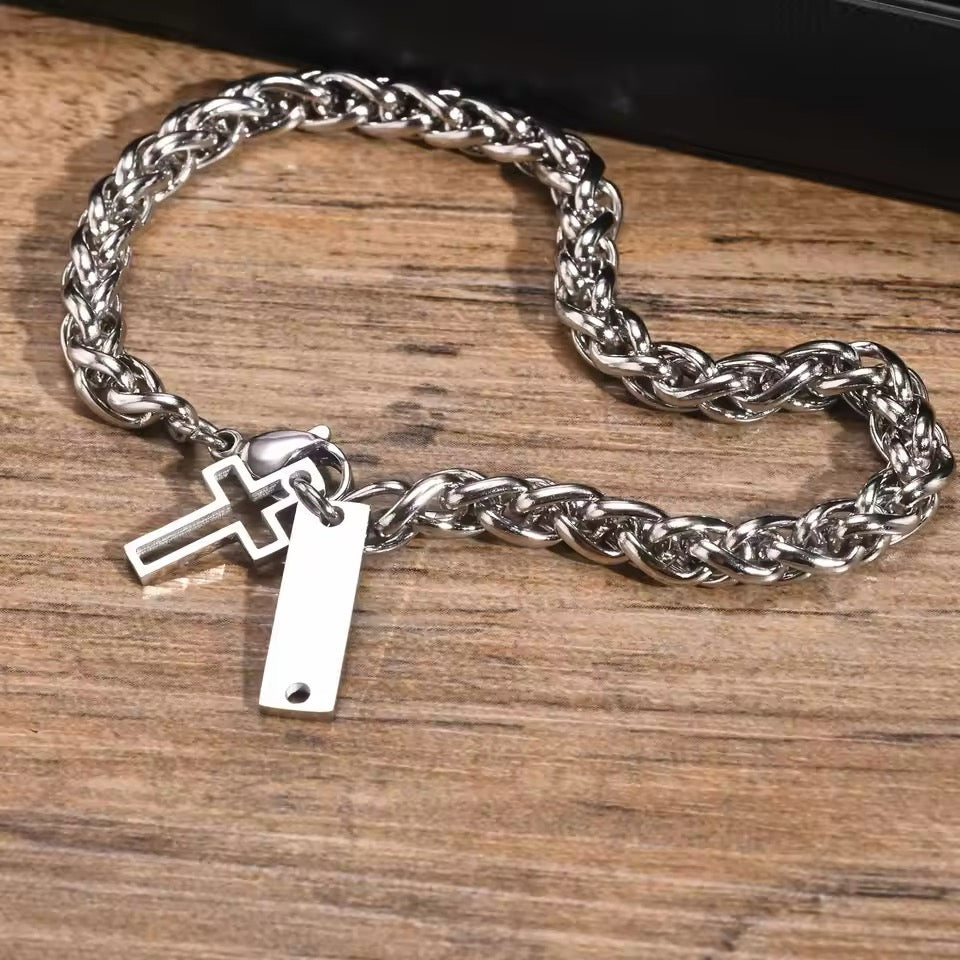 BRAZALETE ESTILO CUBANA ACERO INOXIDABLE ELEGANTE PERSONALIZABLE PLATEADOS