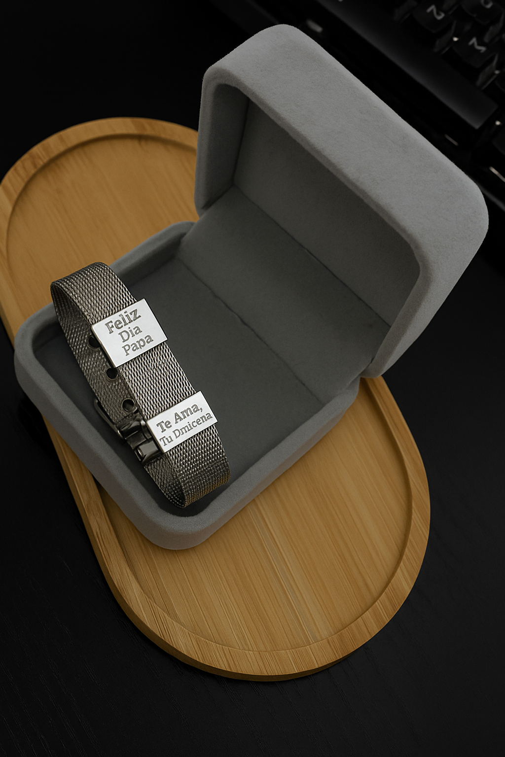BRAZALETE CORREA ACERO VARIAS PLACAS PERSONALIZABLES