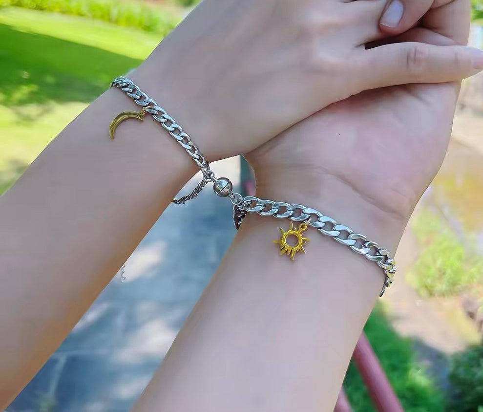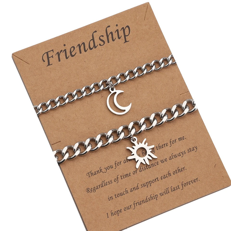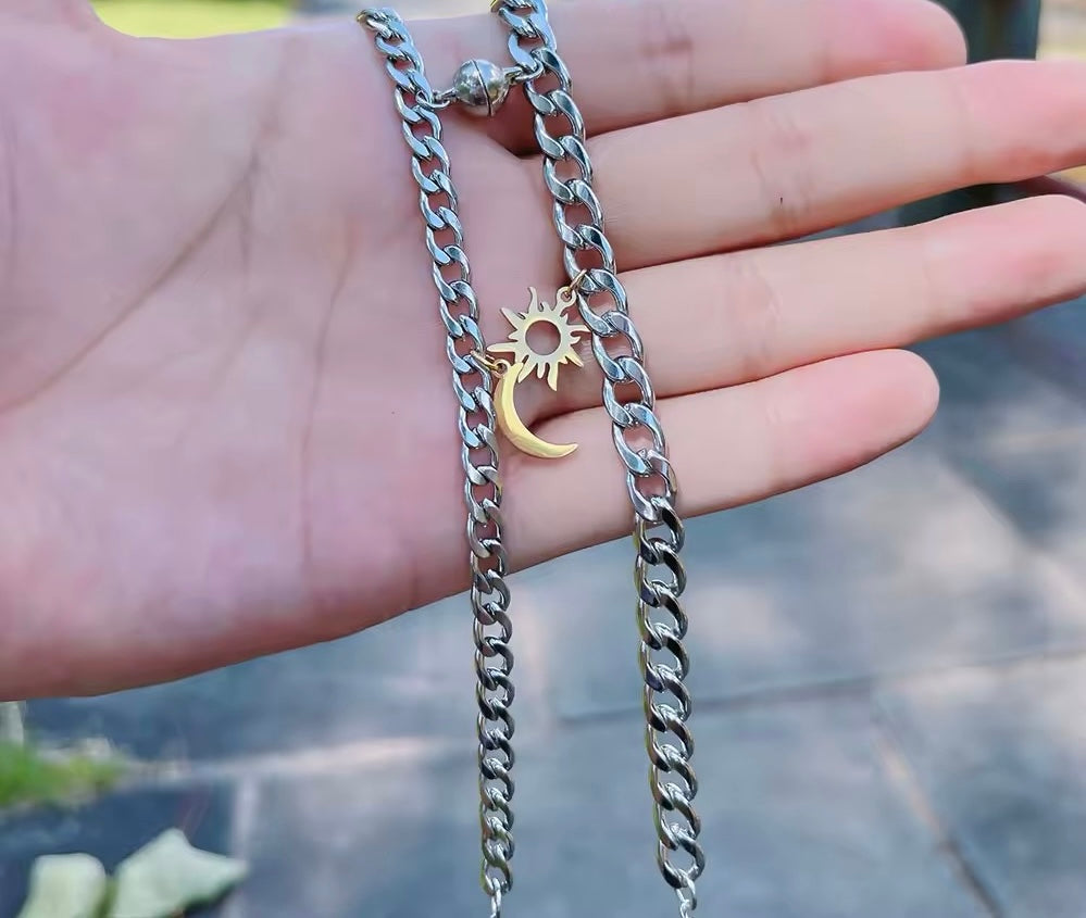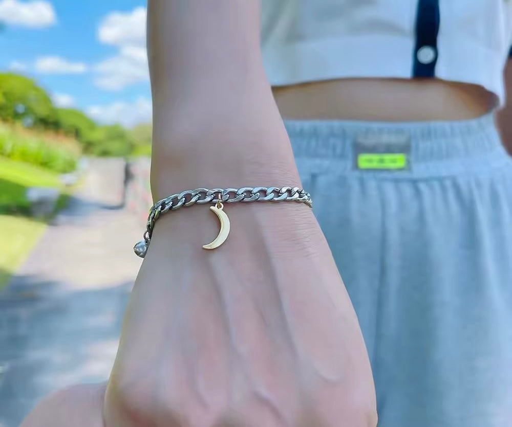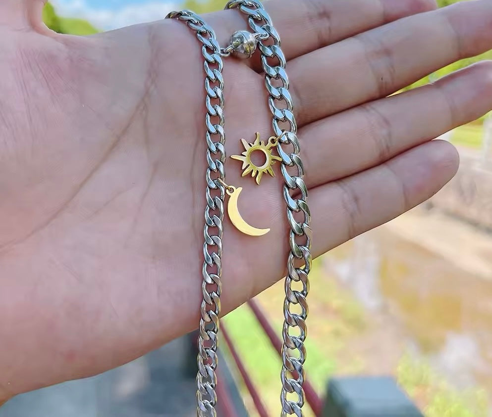 BRAZALETES CADENA CUBANA SOL Y LUNA MINIMALISTAS