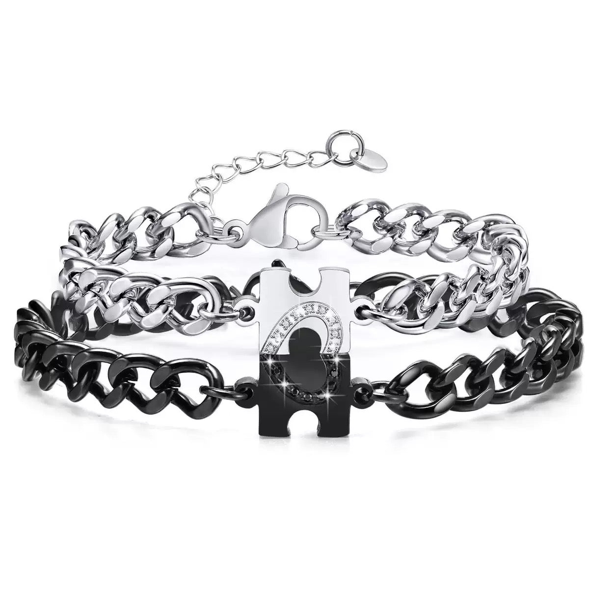 BRAZALETES ROMPECABEZAS MINIMALISTAS CADENA CUBANA DE PAREJA