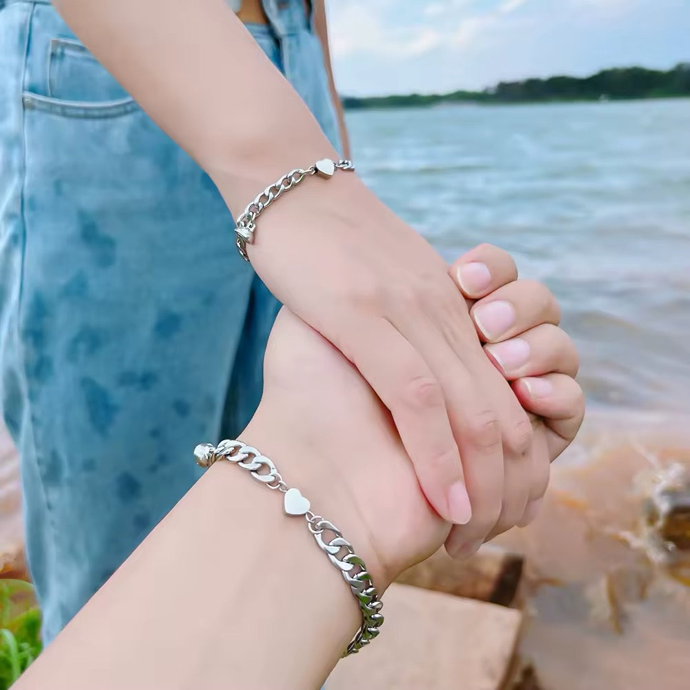 BRAZALETES MAGNÉTICOS PERSONALIZABLES ESTILO CUBANA CON CORAZÓN MINIMALISTA