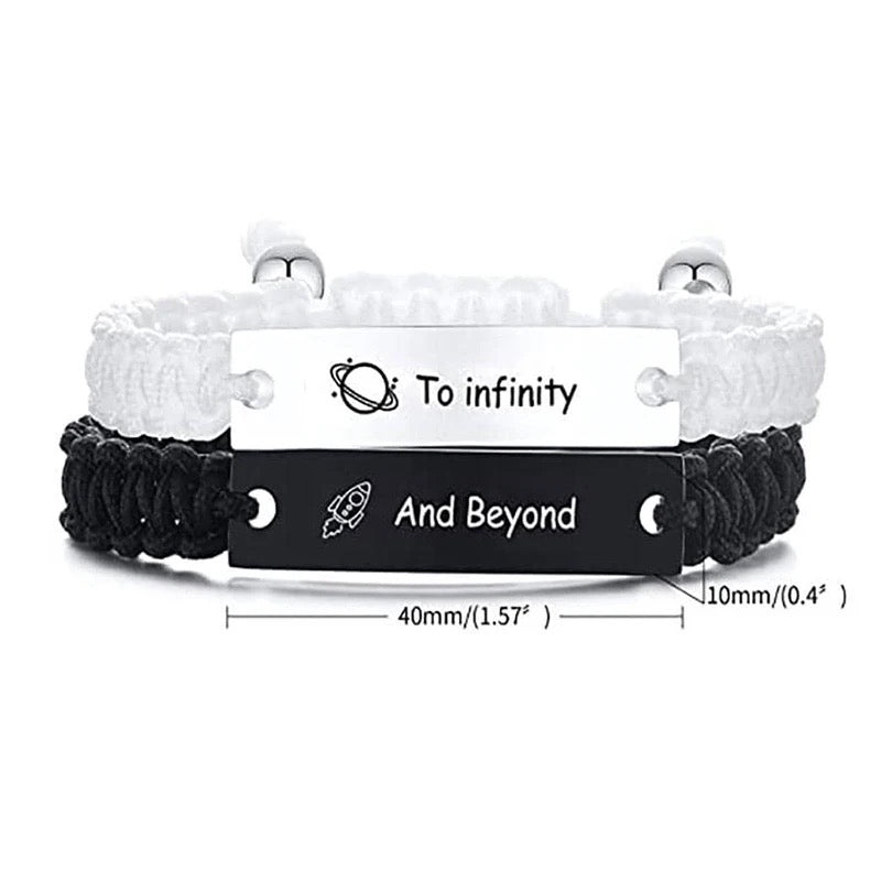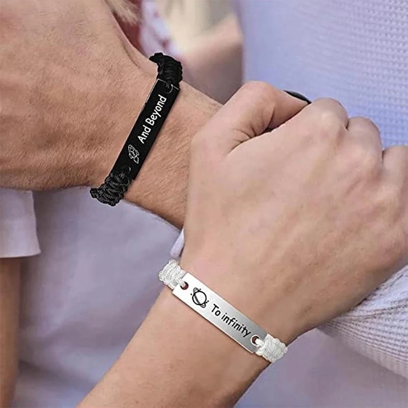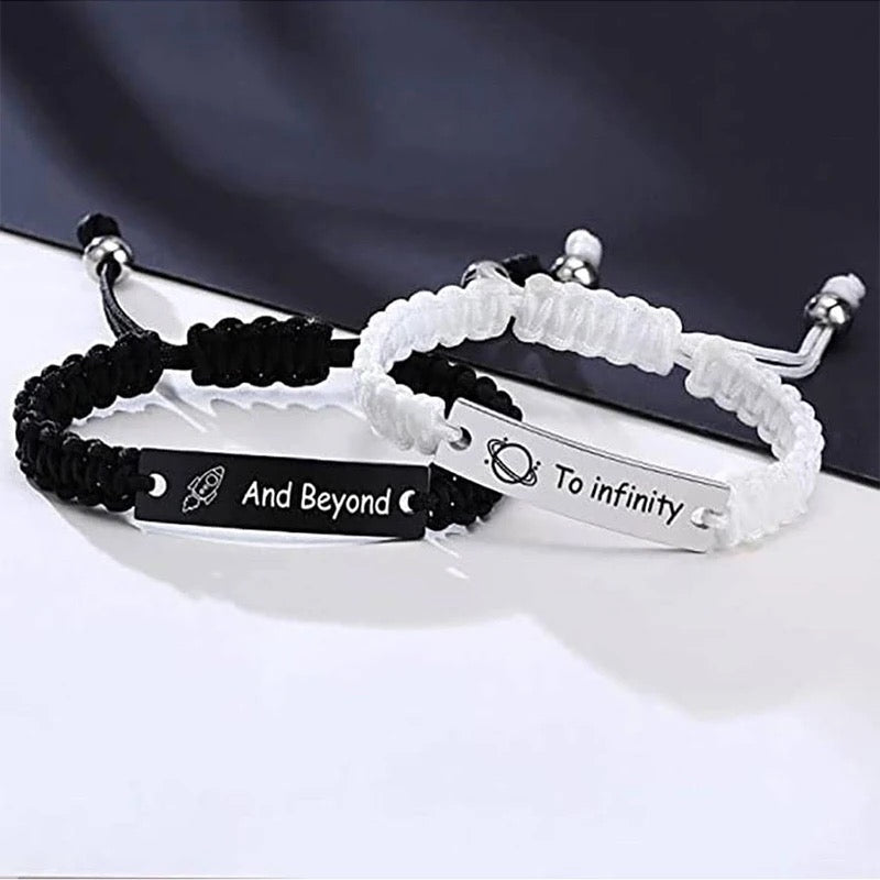 BRAZALETES TEJIDOS PAREJA TE AMO AL INFINITO Y MÁS ALLÁ