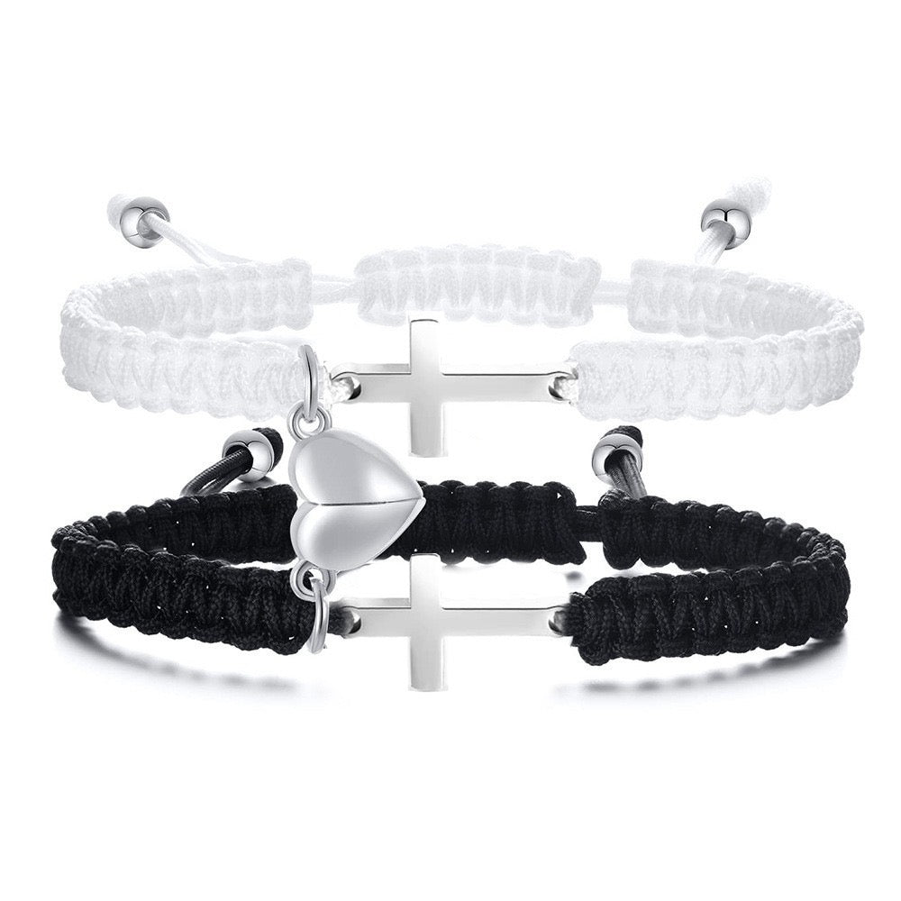 BRAZALETES TEJIDOS PAREJA CRUCES CRUZ CON IMÁN MAGNÉTICAS