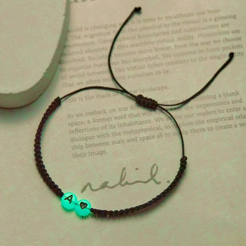 BRAZALETES DIJE INICIALES BRILLAN EN LA OSCURIDAD MINIMALISTAS