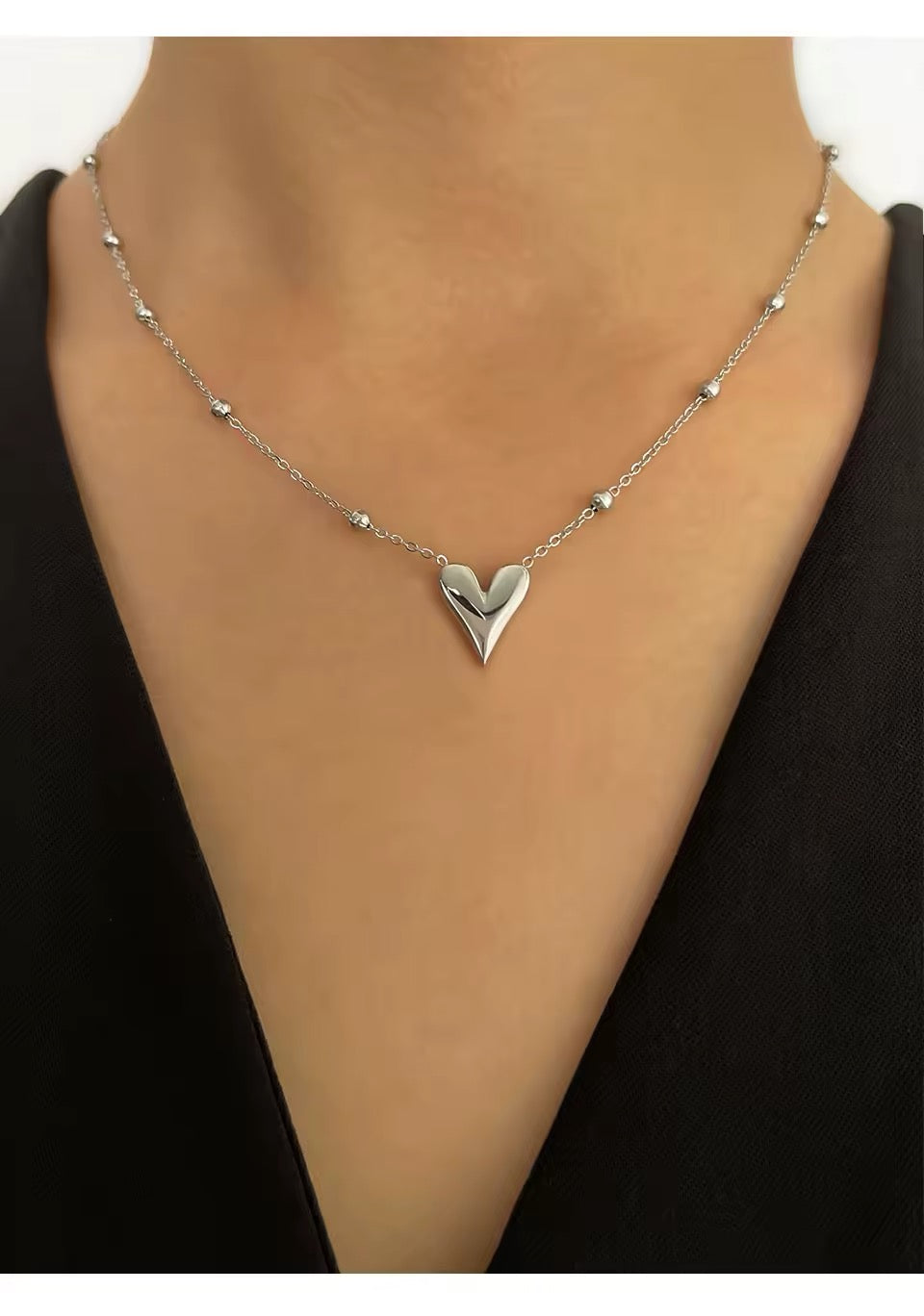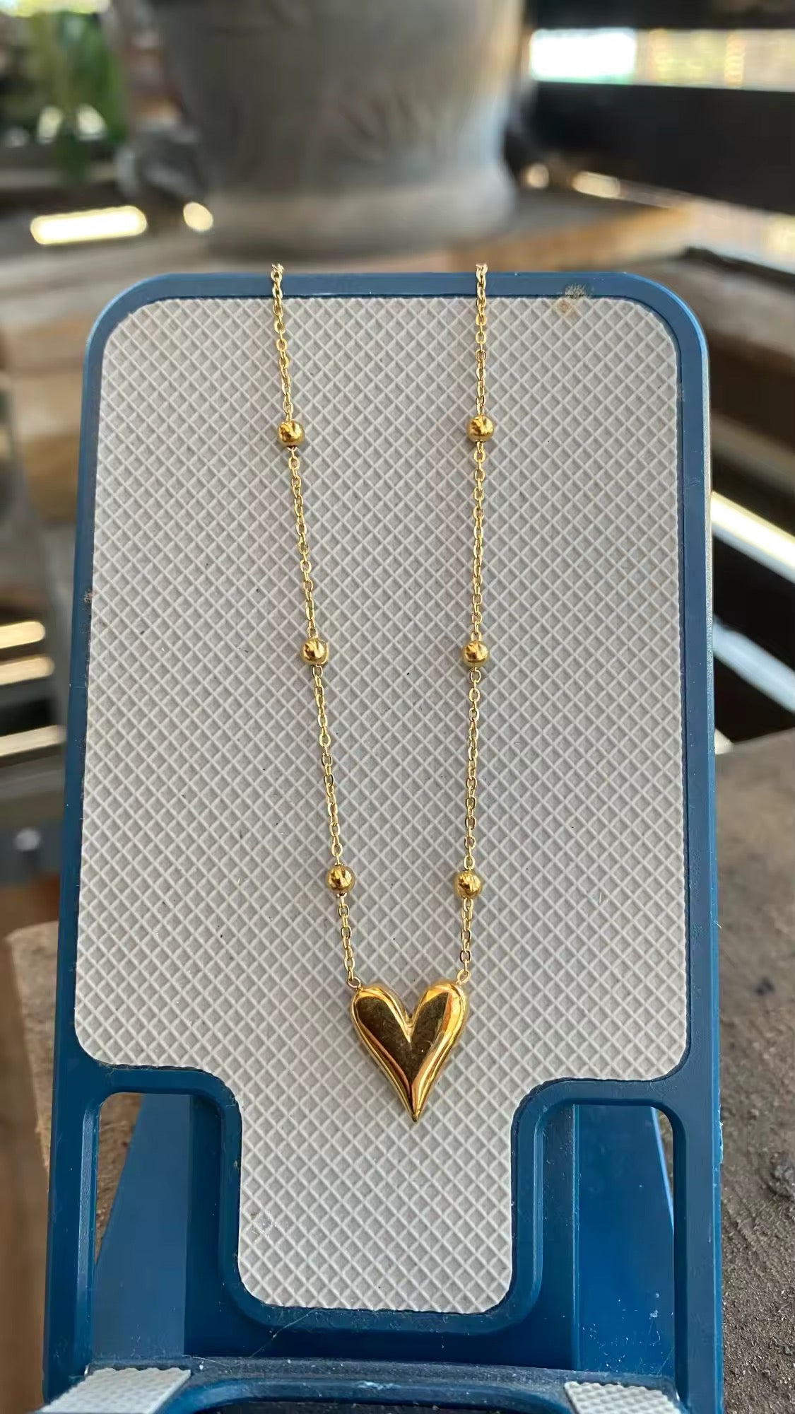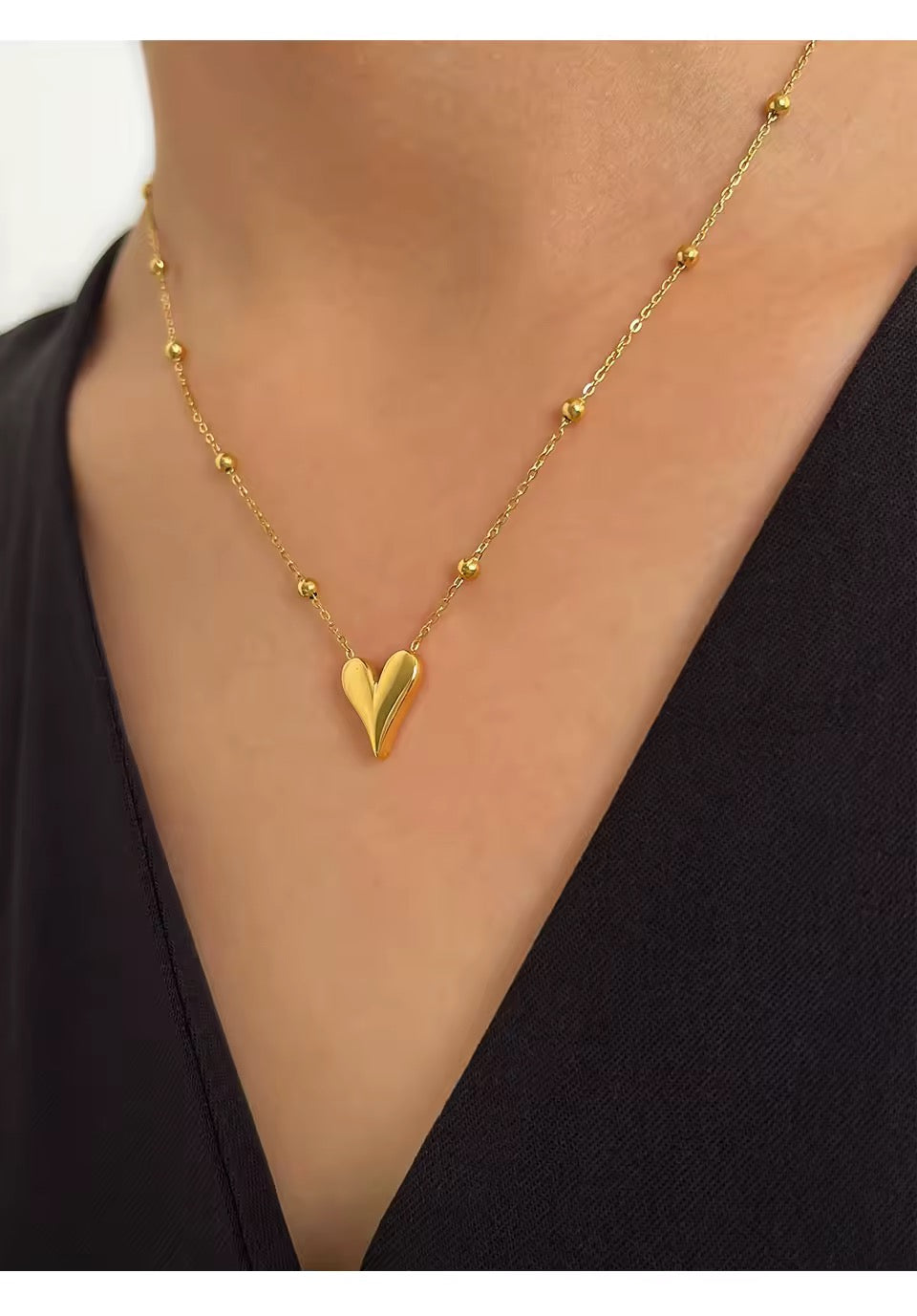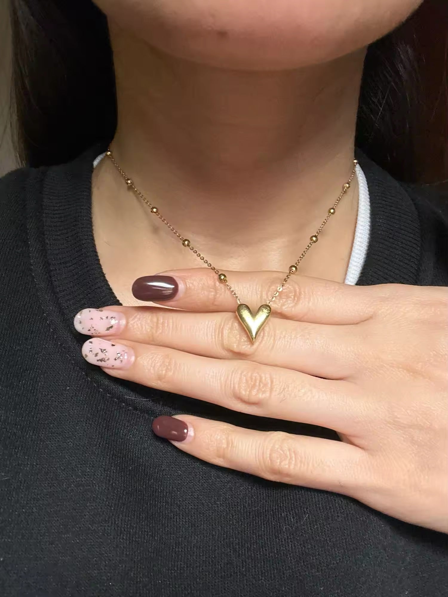 CADENA DE BOLITAS CORAZÓN ALARGADO ELEGANTE