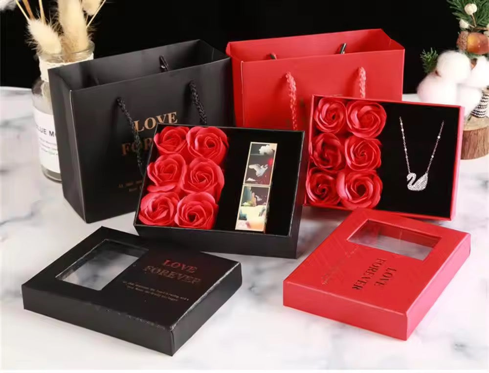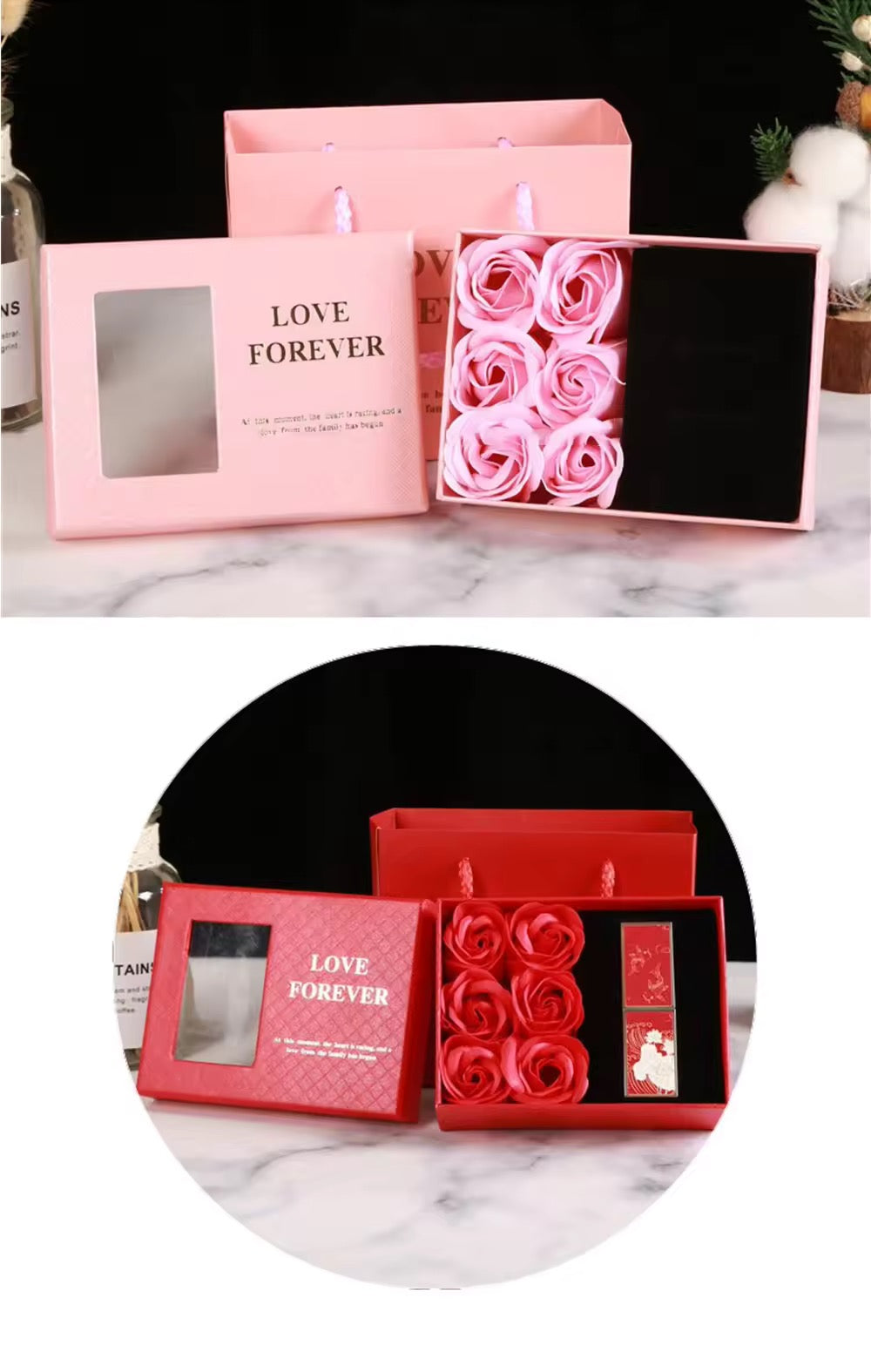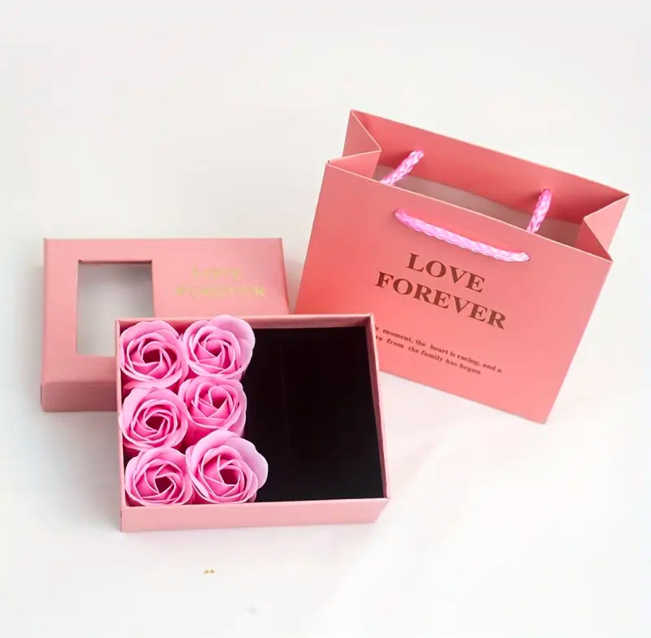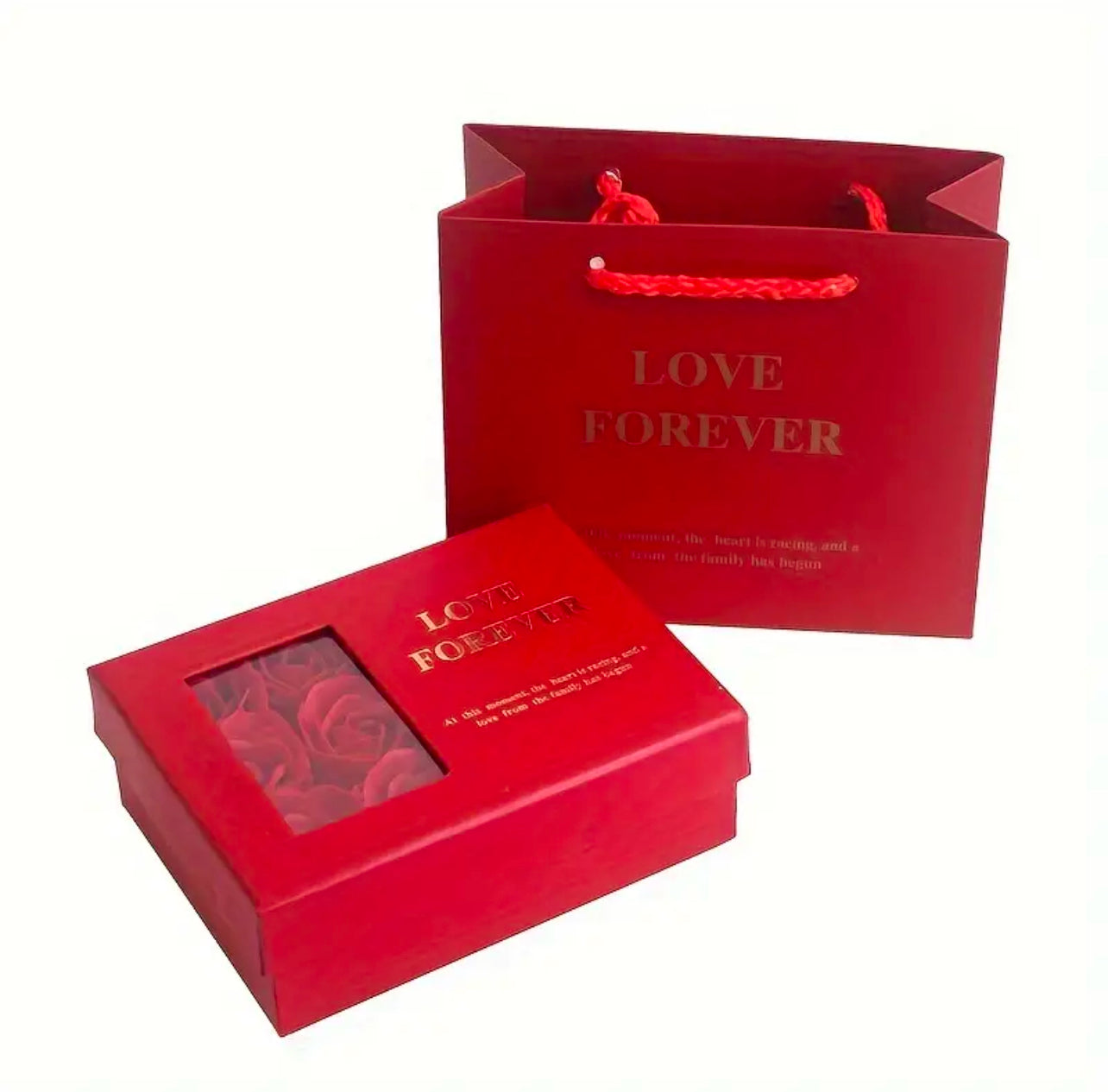 CAJA DE FLORES ETERNAS CON BOLSA DE REGALO