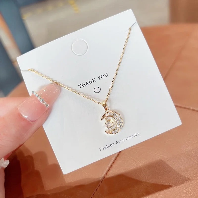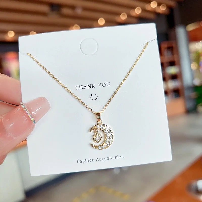 COLLAR LUNA MINIMALISTA ESTRELLA COLGANTE ELEGANTE CRISTAL DE CIRCONIA