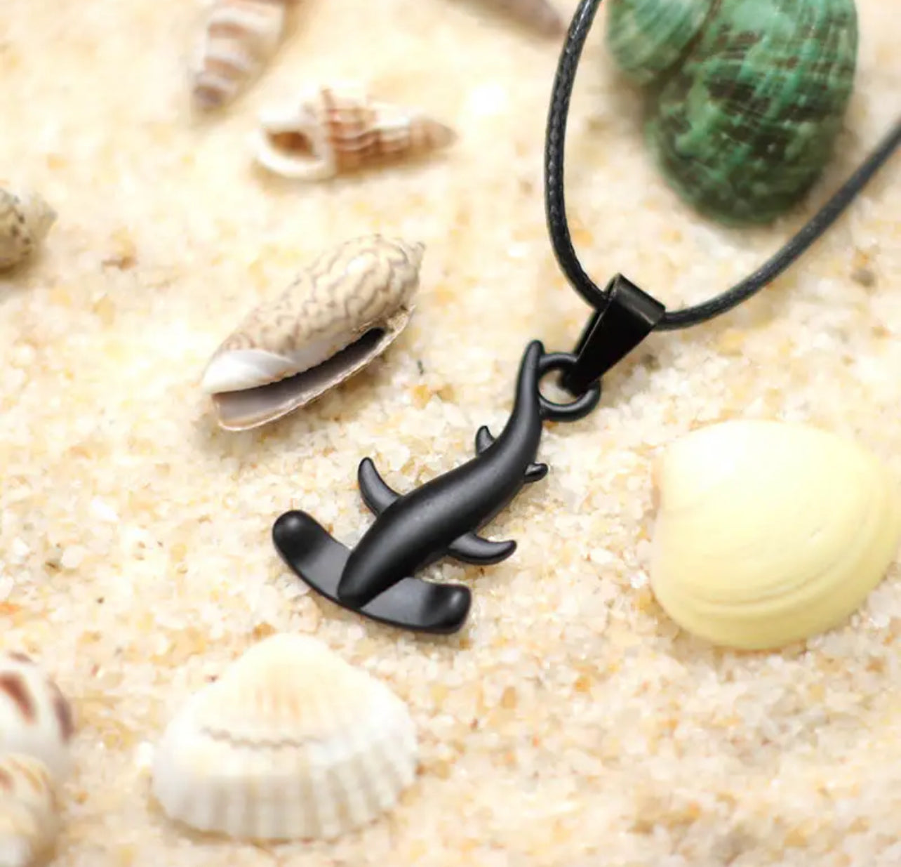 COLLAR CORDÓN LEATHER MINIMALISTA TIBURÓN PLANO MARINO