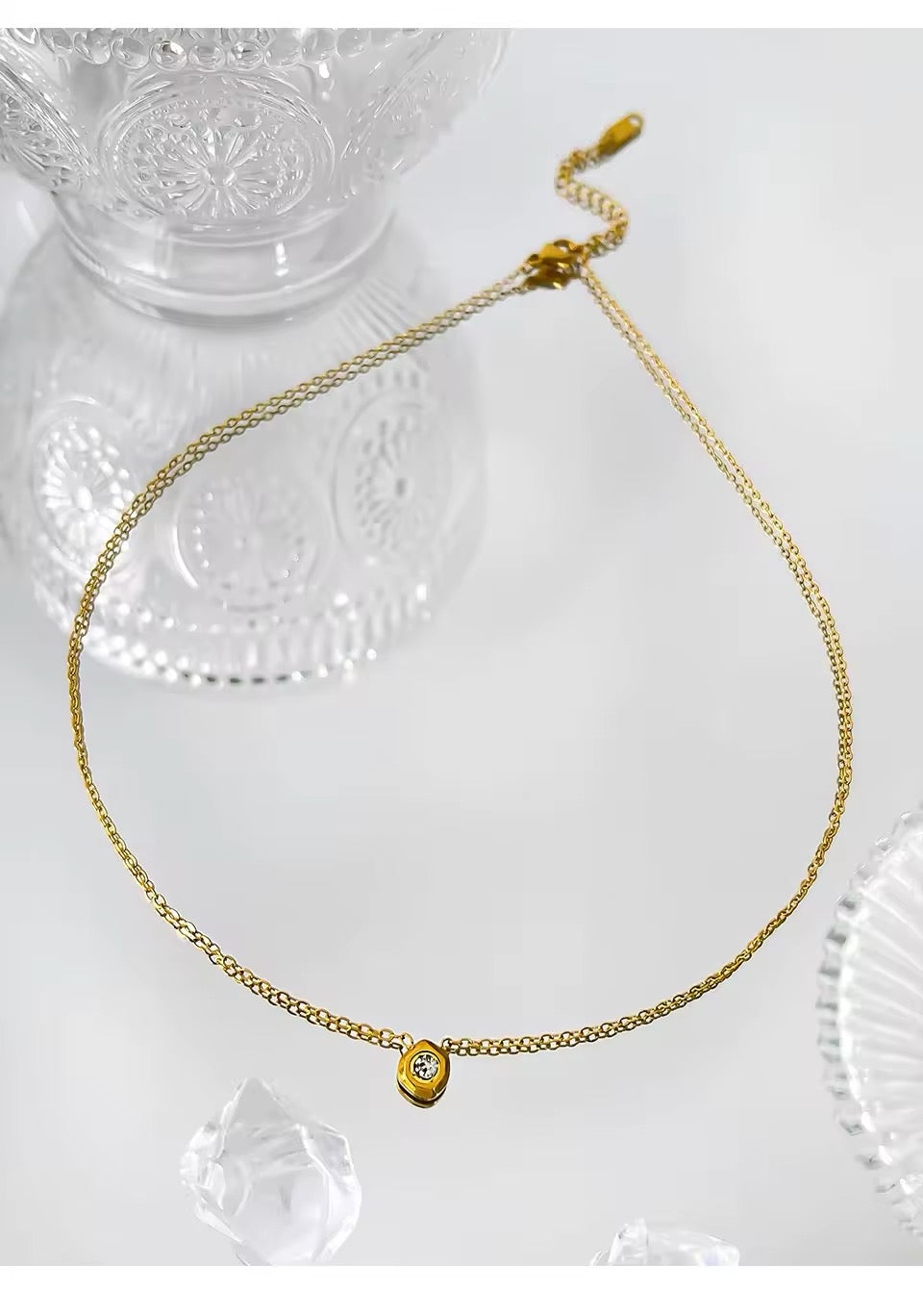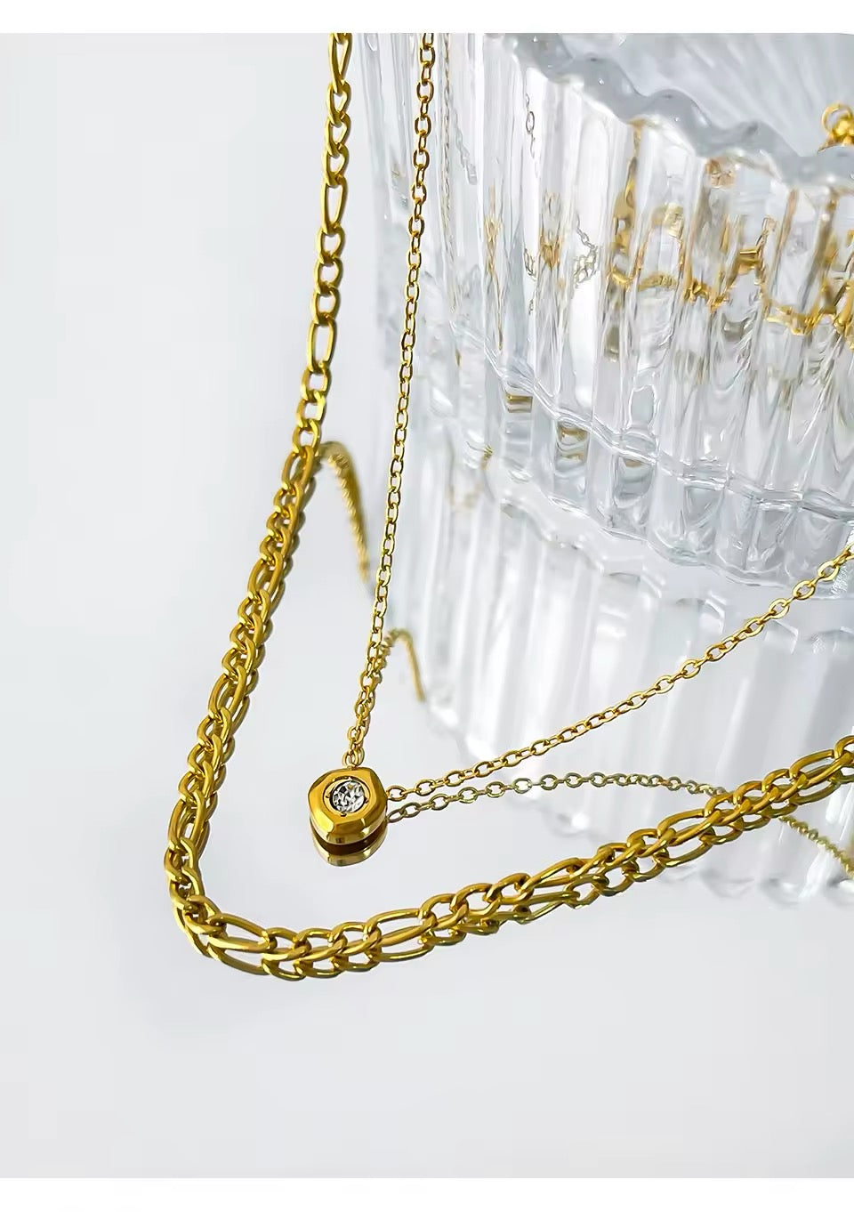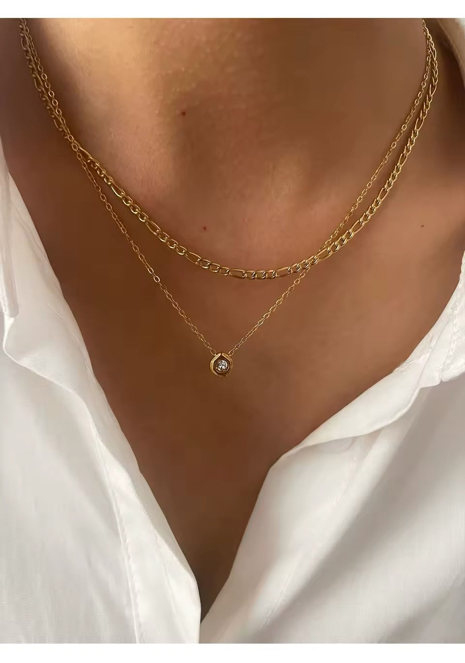 COLLAR DOBLE CAPA CRISTAL DE ZIRCONIA , CUBANA MINIMALISTA