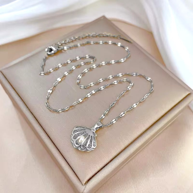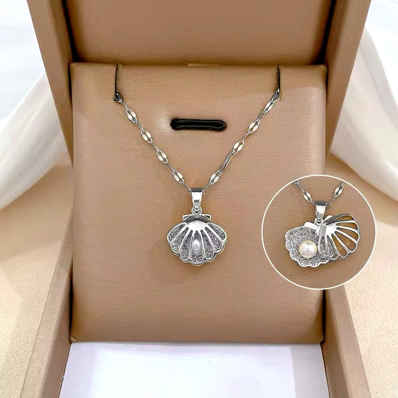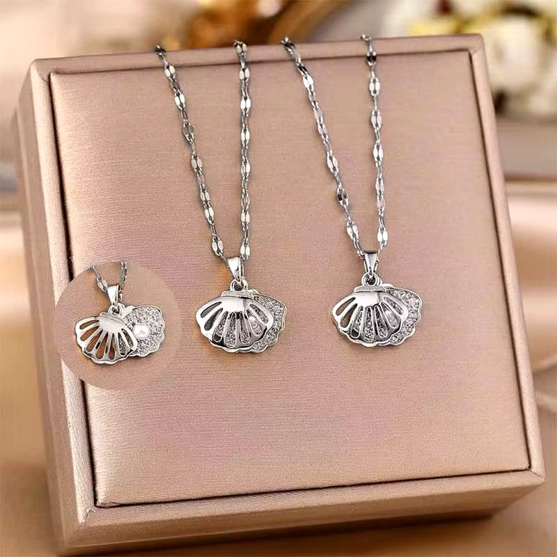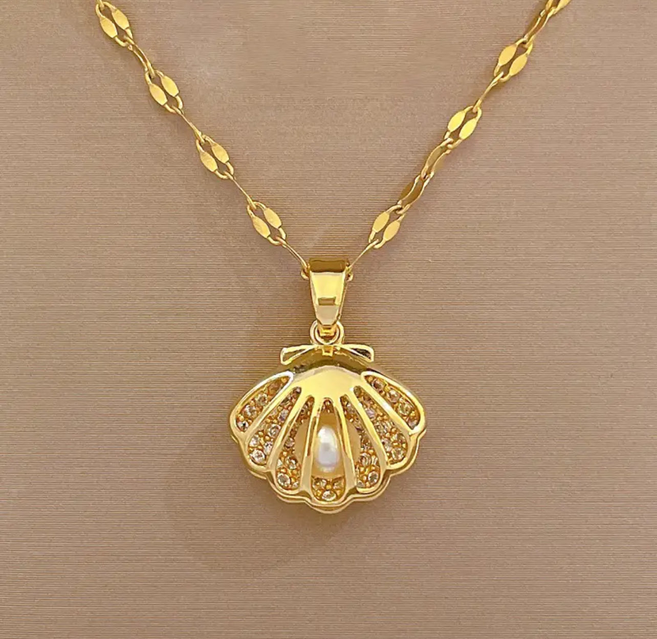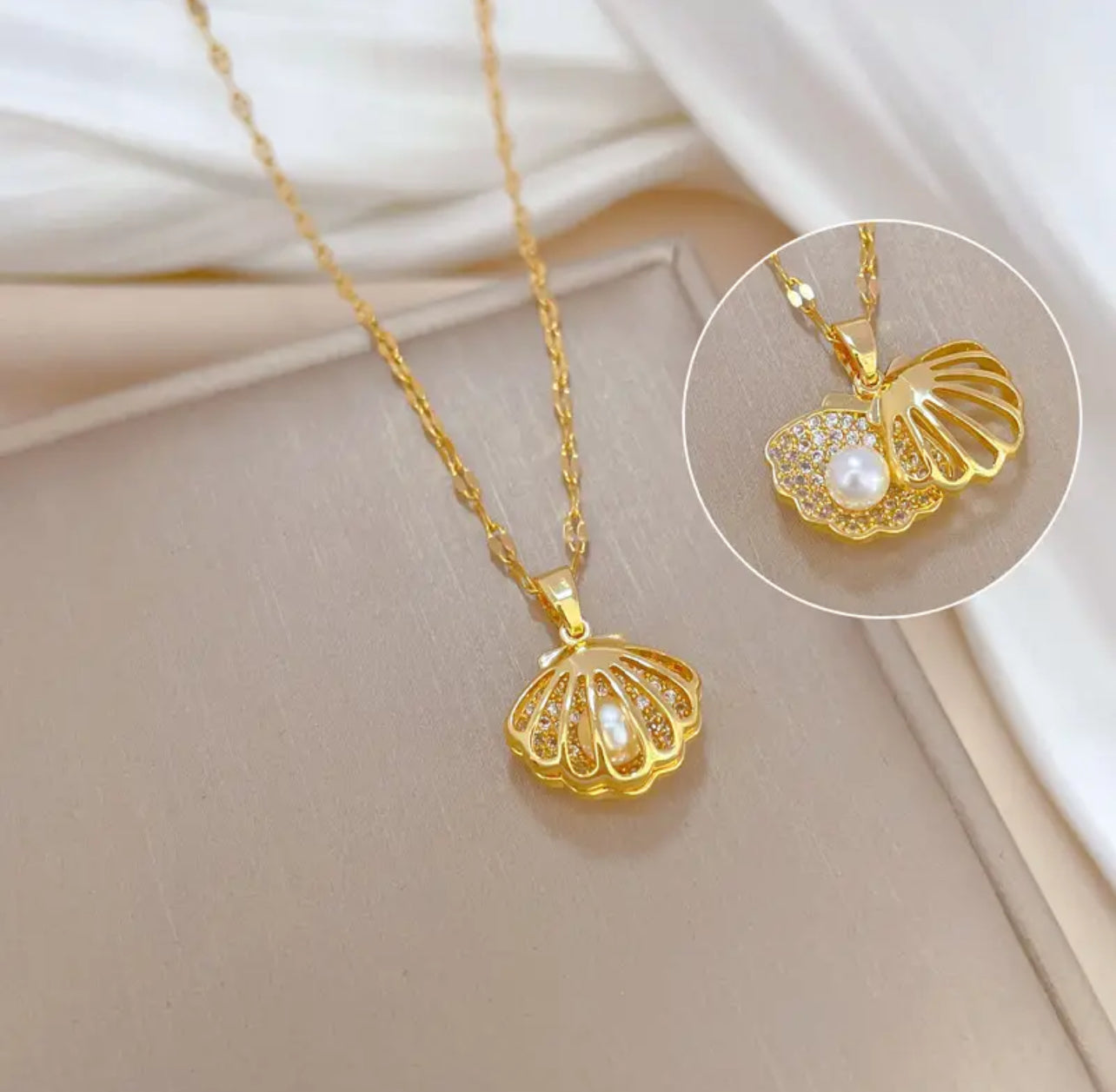 COLLAR CONCHA DE MAR PERLA ELEGANTE CRISTAL DE CIRCONIA
