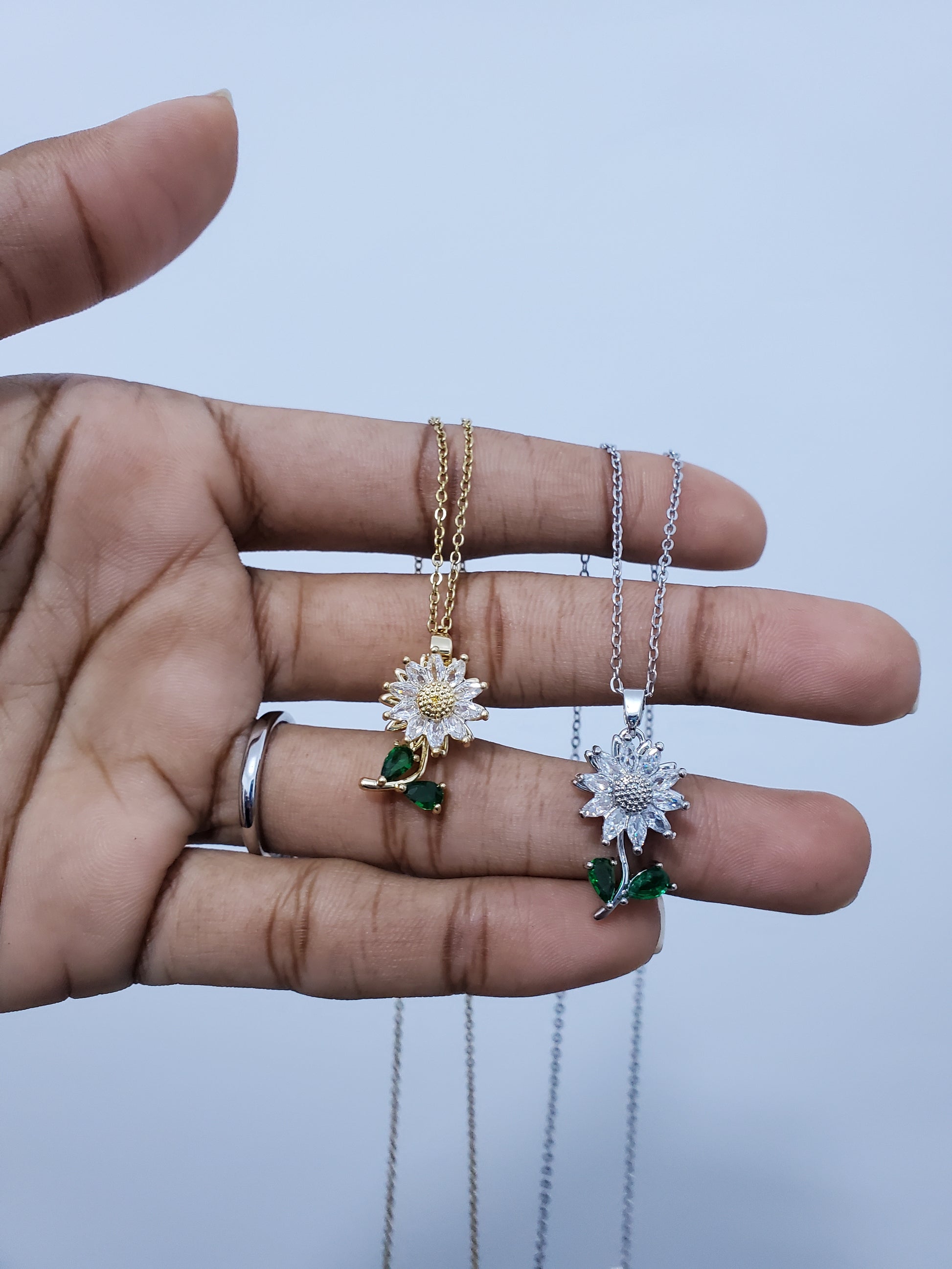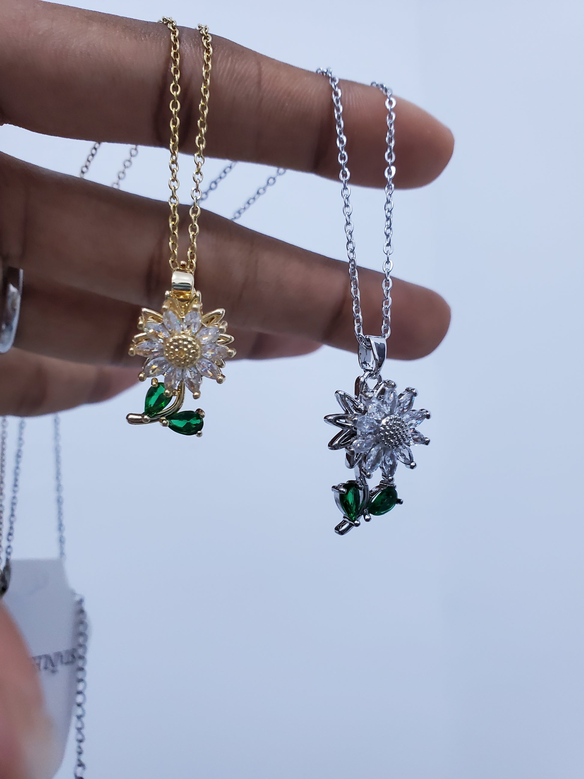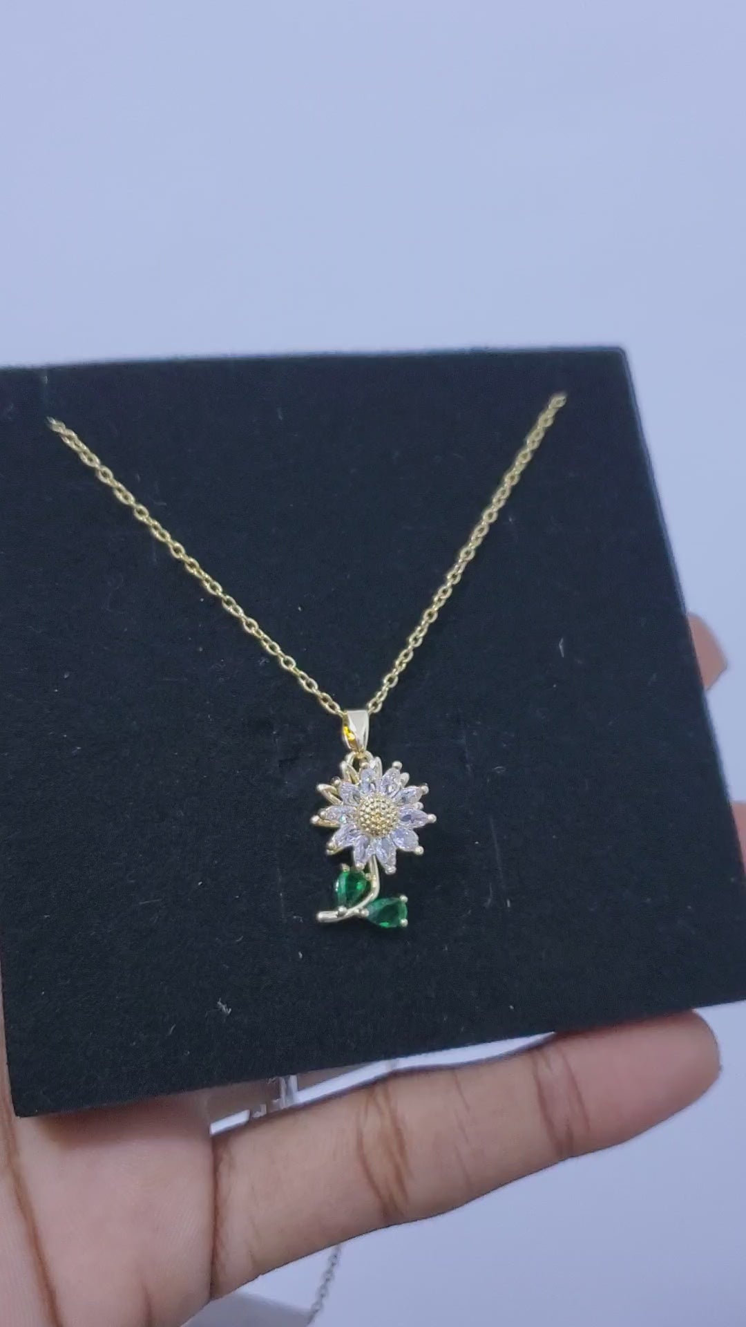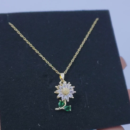 COLLAR MINIMALISTA FLOR GIRASOL CON TALLO GIRATORIA ANTIESTRÉS MINIMALISTA