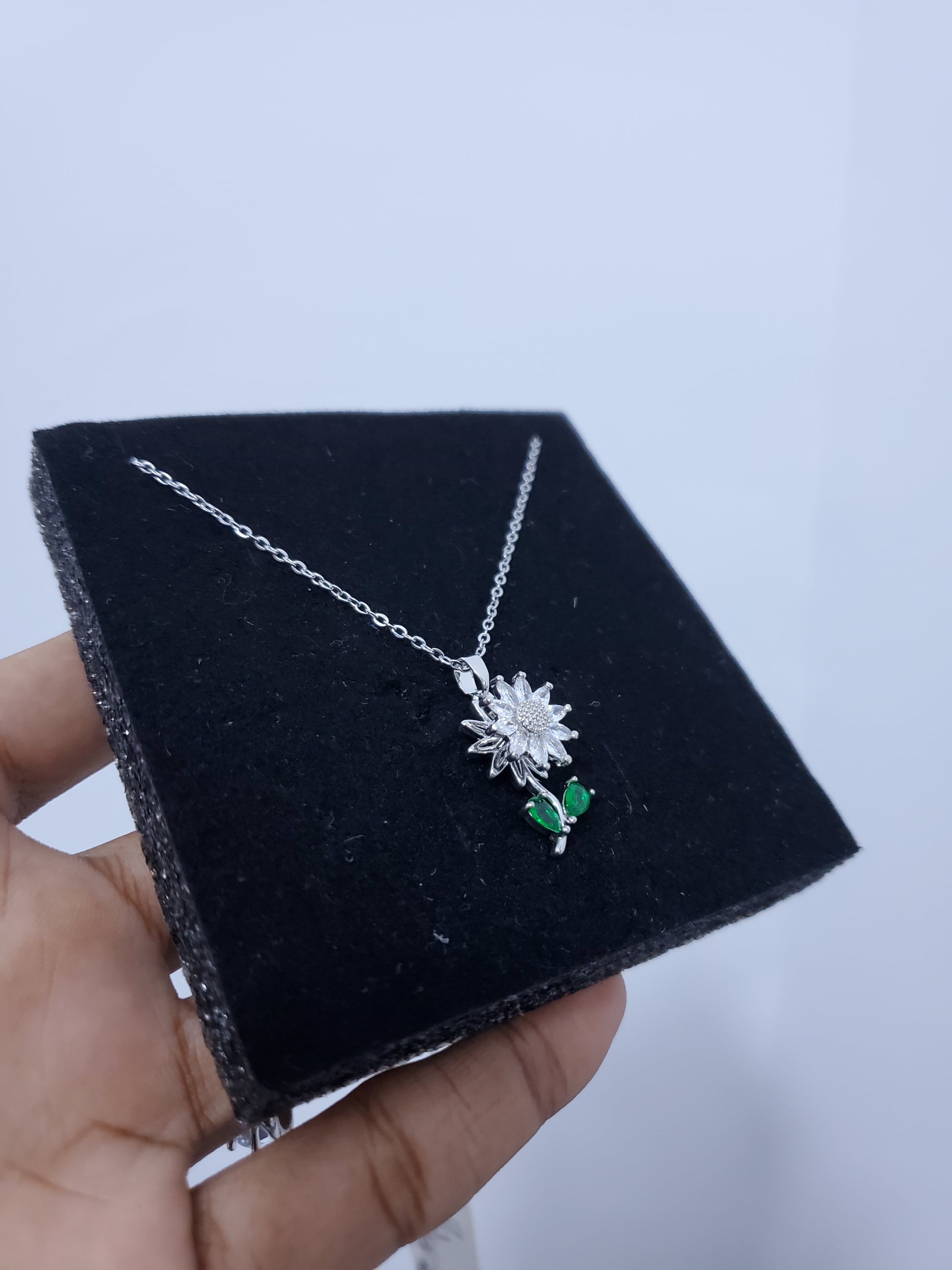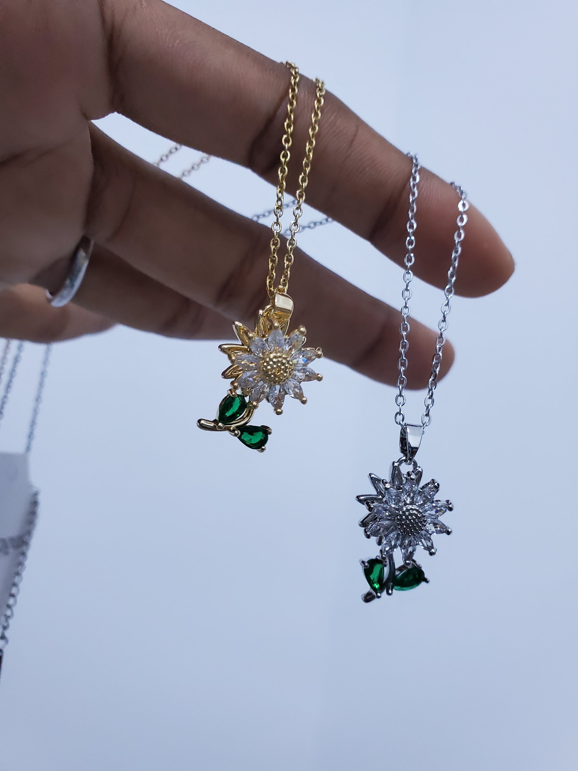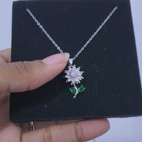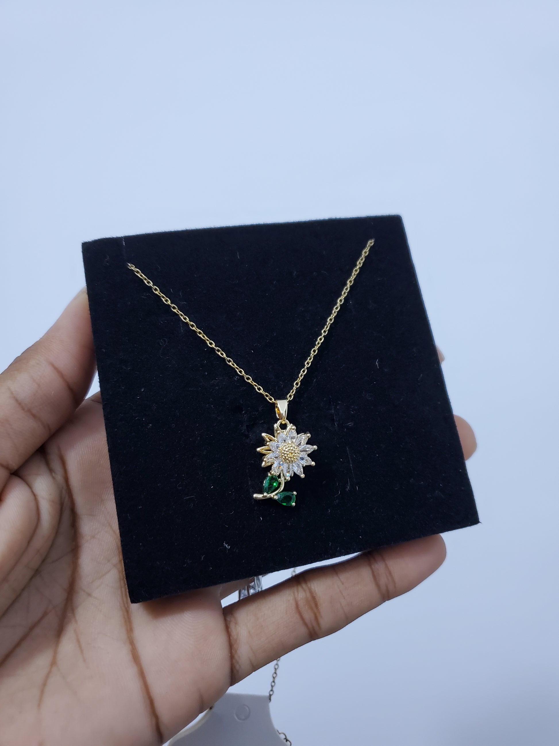 COLLAR MINIMALISTA FLOR GIRASOL CON TALLO GIRATORIA ANTIESTRÉS MINIMALISTA