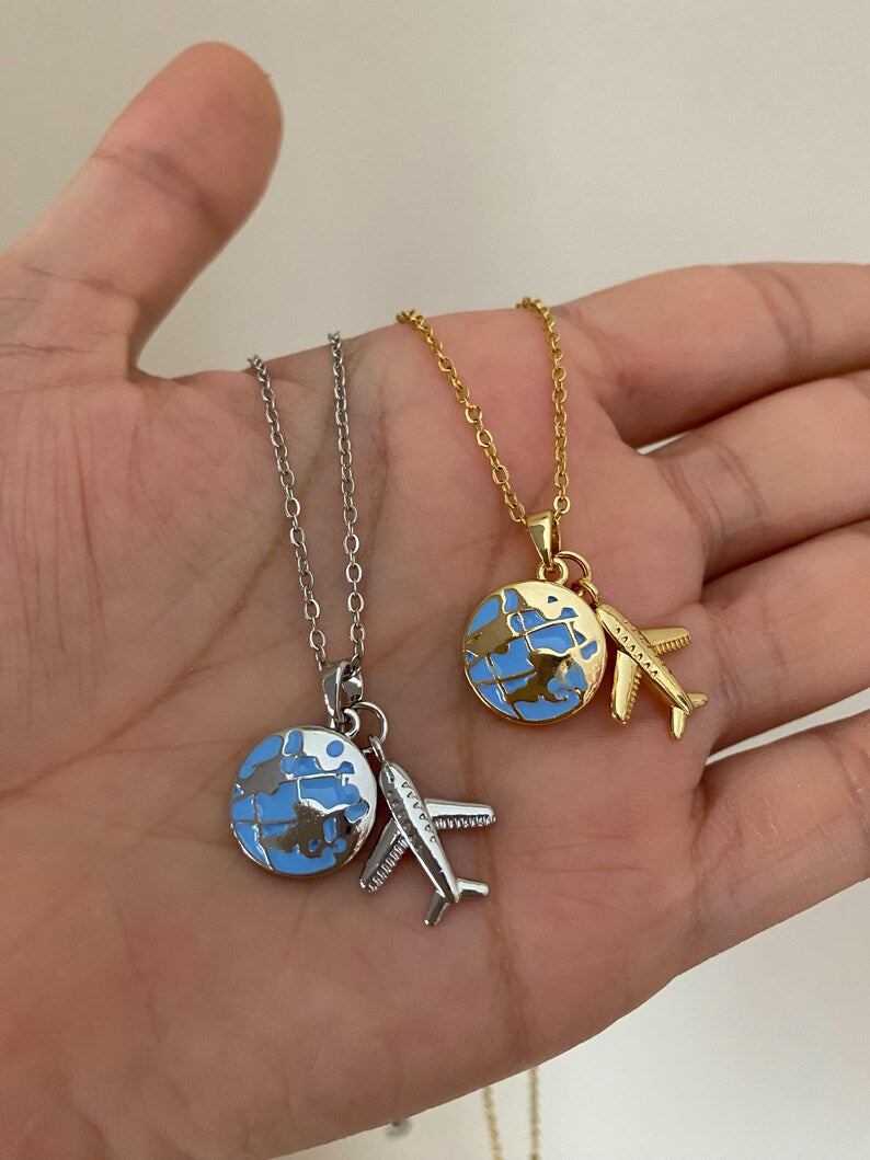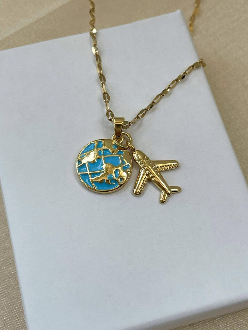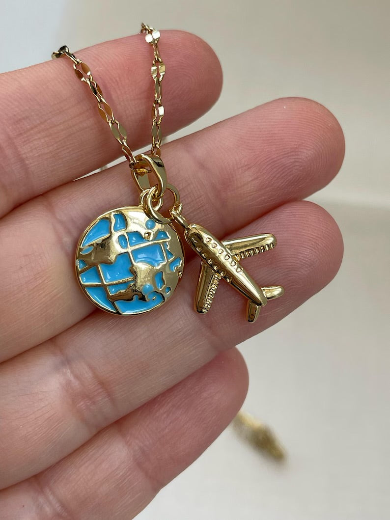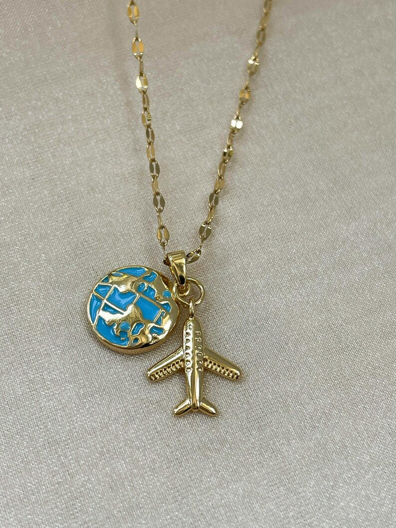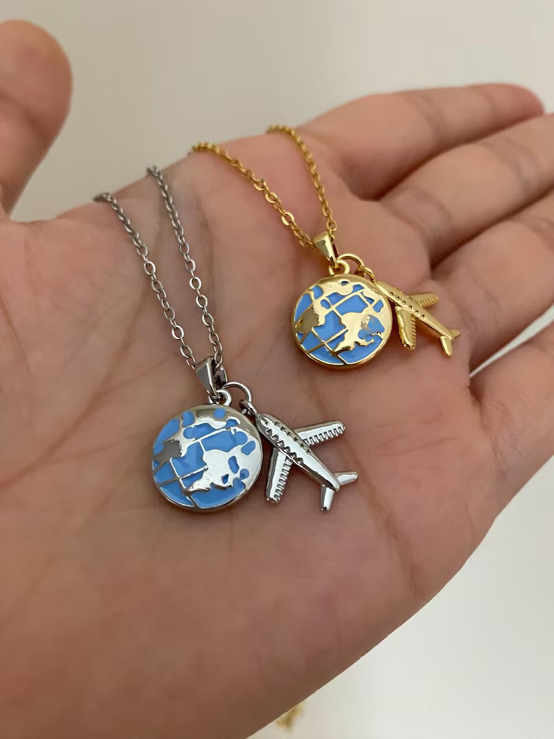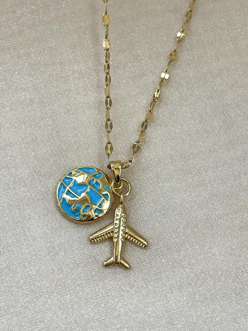 COLLAR LOVE TRAVEL GLOBO TERRÁQUEO DIJE DE AVIÓN ELEGANTE