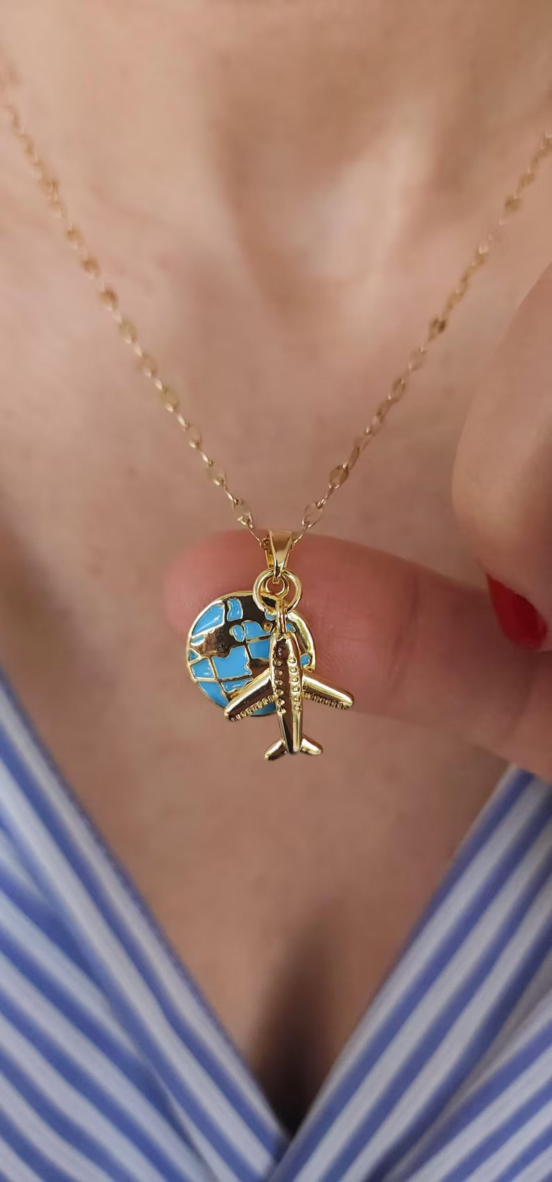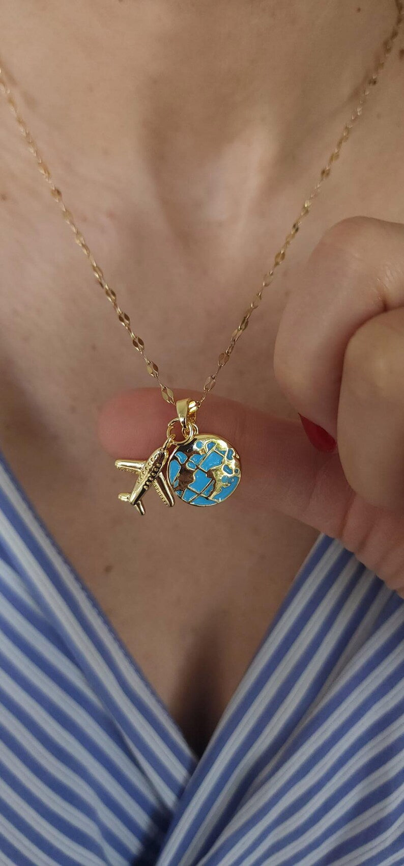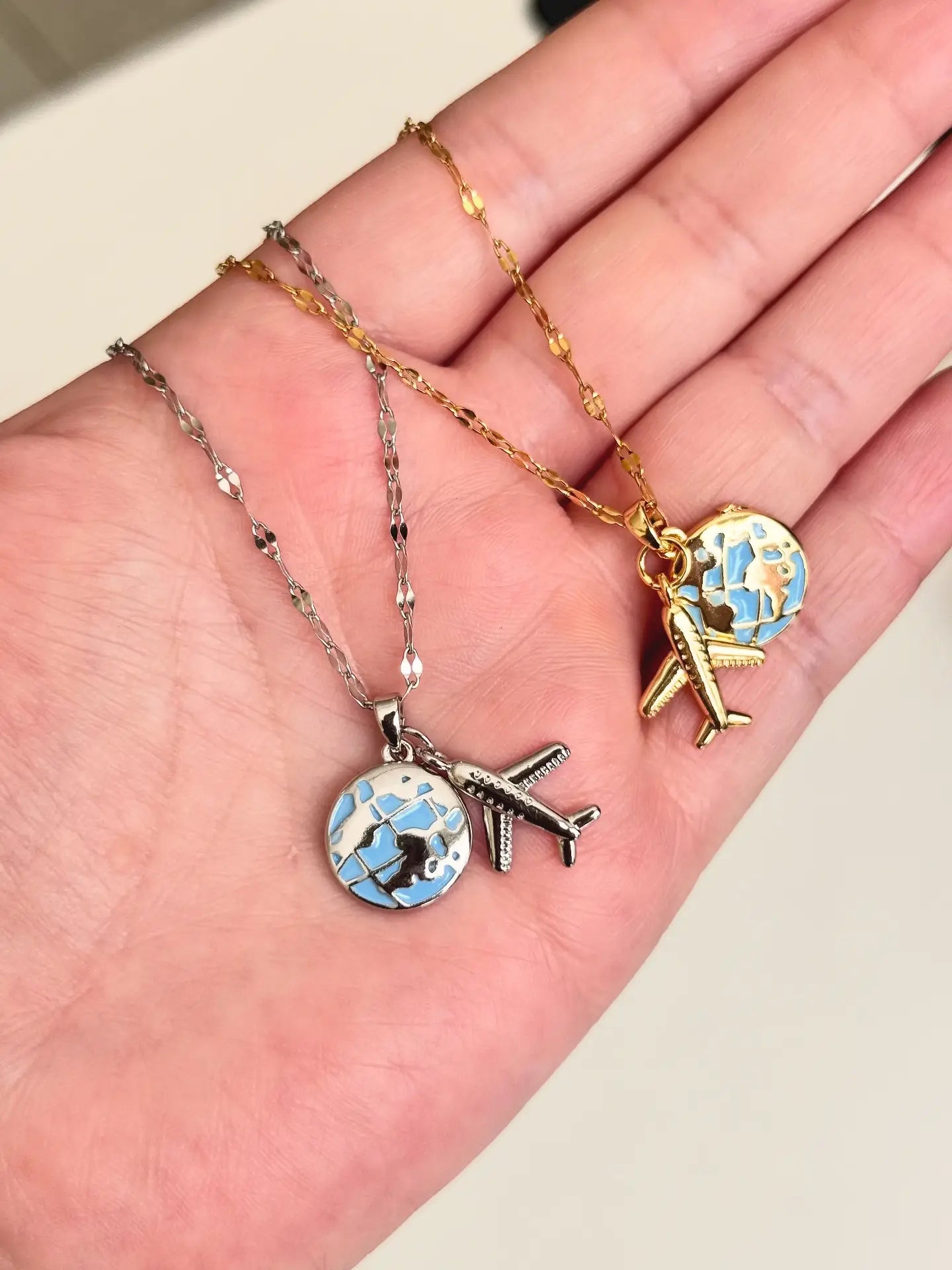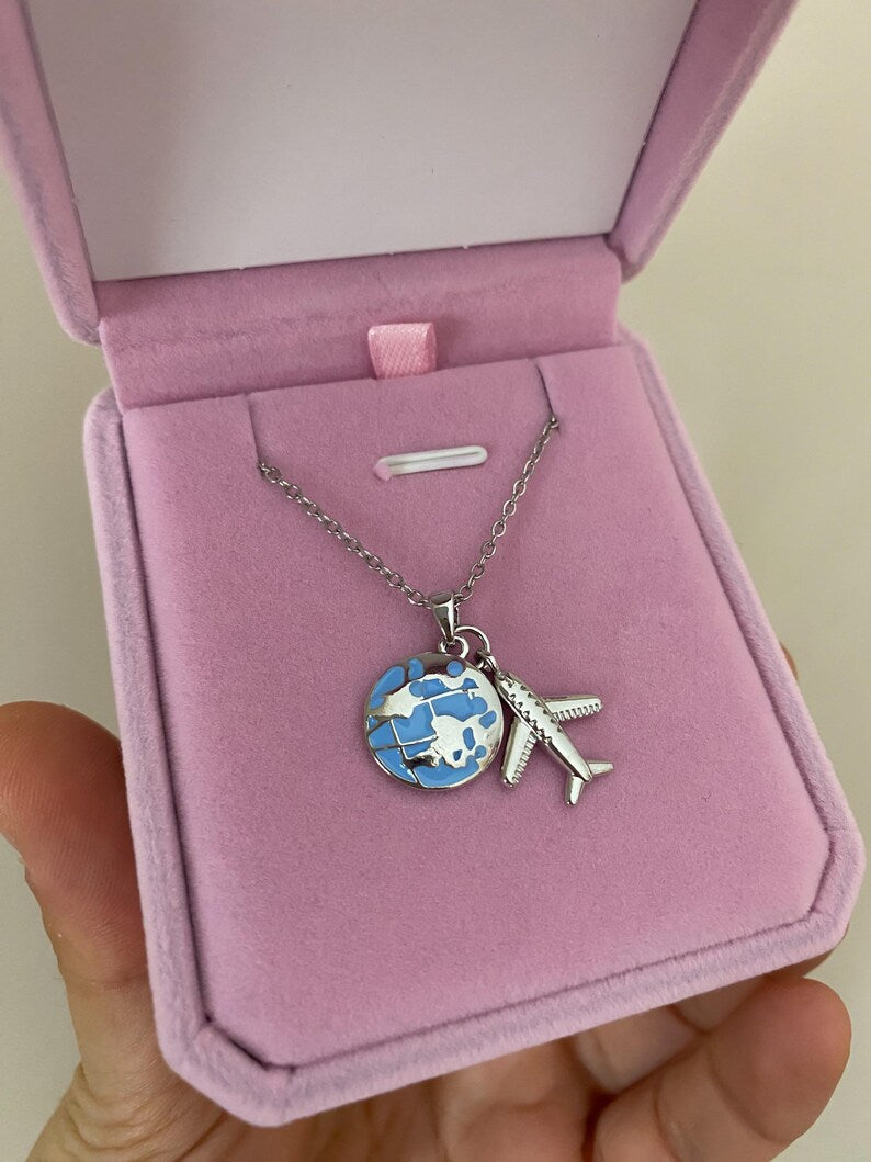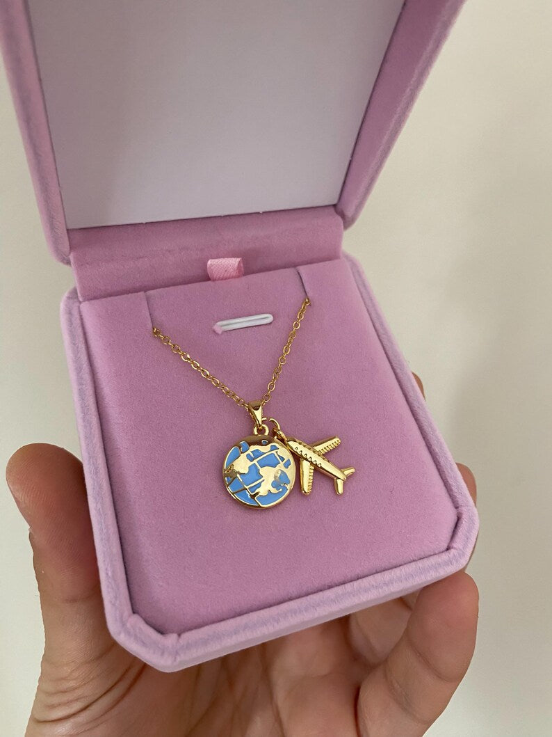 COLLAR LOVE TRAVEL GLOBO TERRÁQUEO DIJE DE AVIÓN ELEGANTE