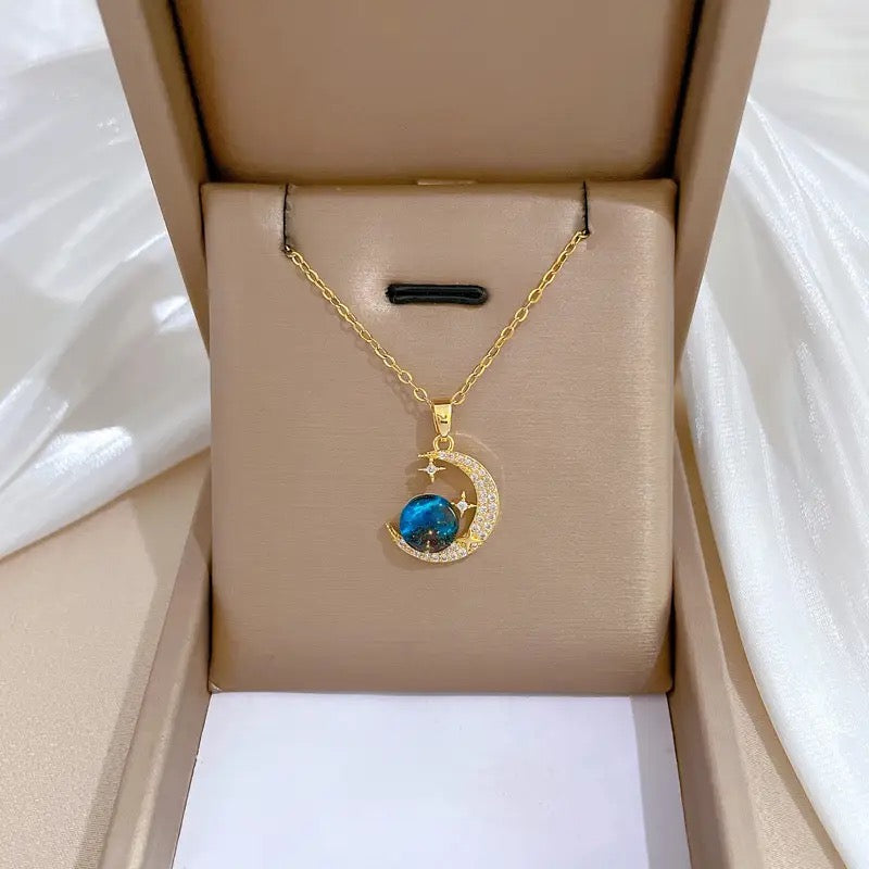 COLLAR LUNA Y CIELO ESTRELLADO ELEGANTE CRISTAL DE CIRCONIA