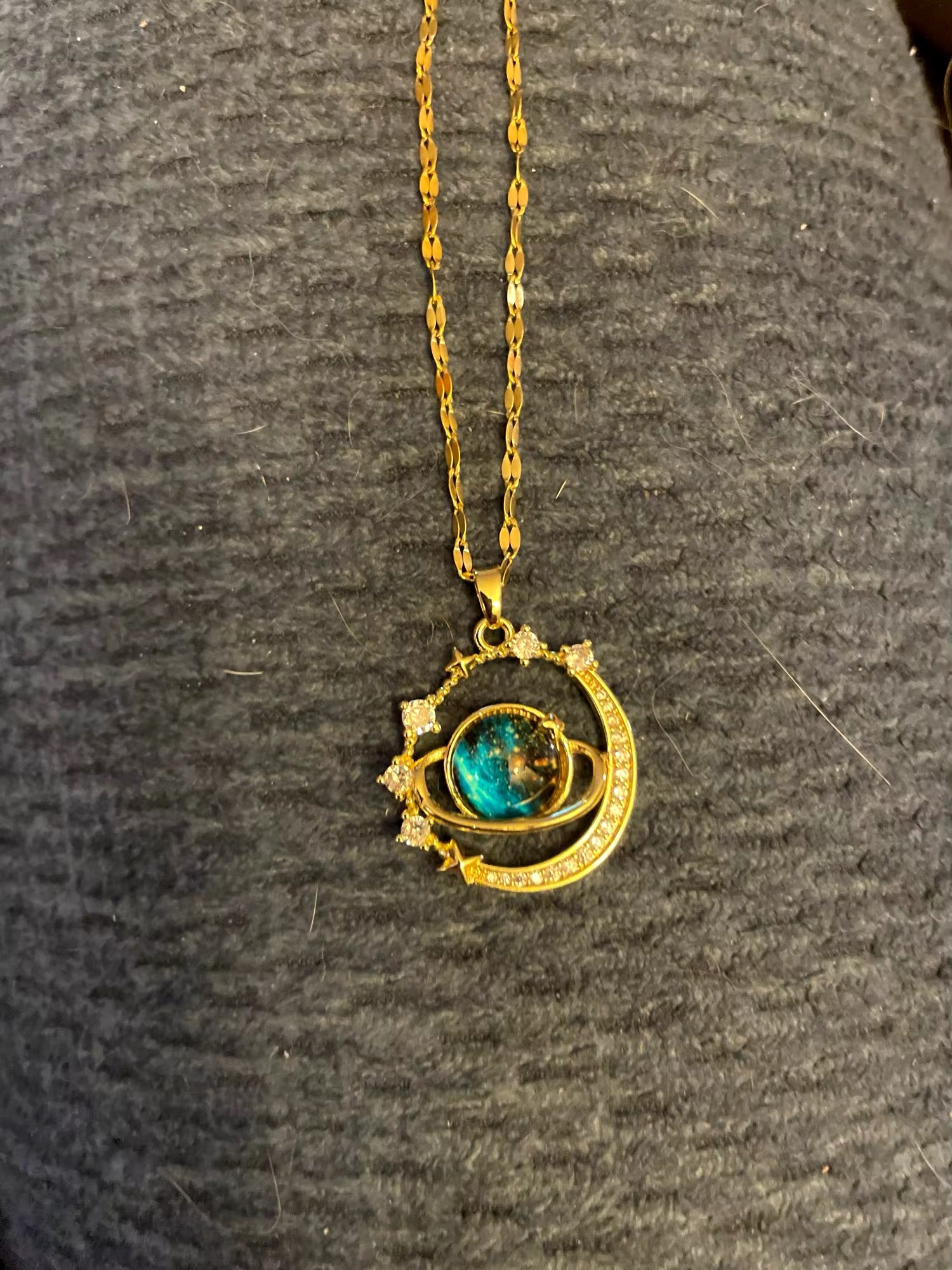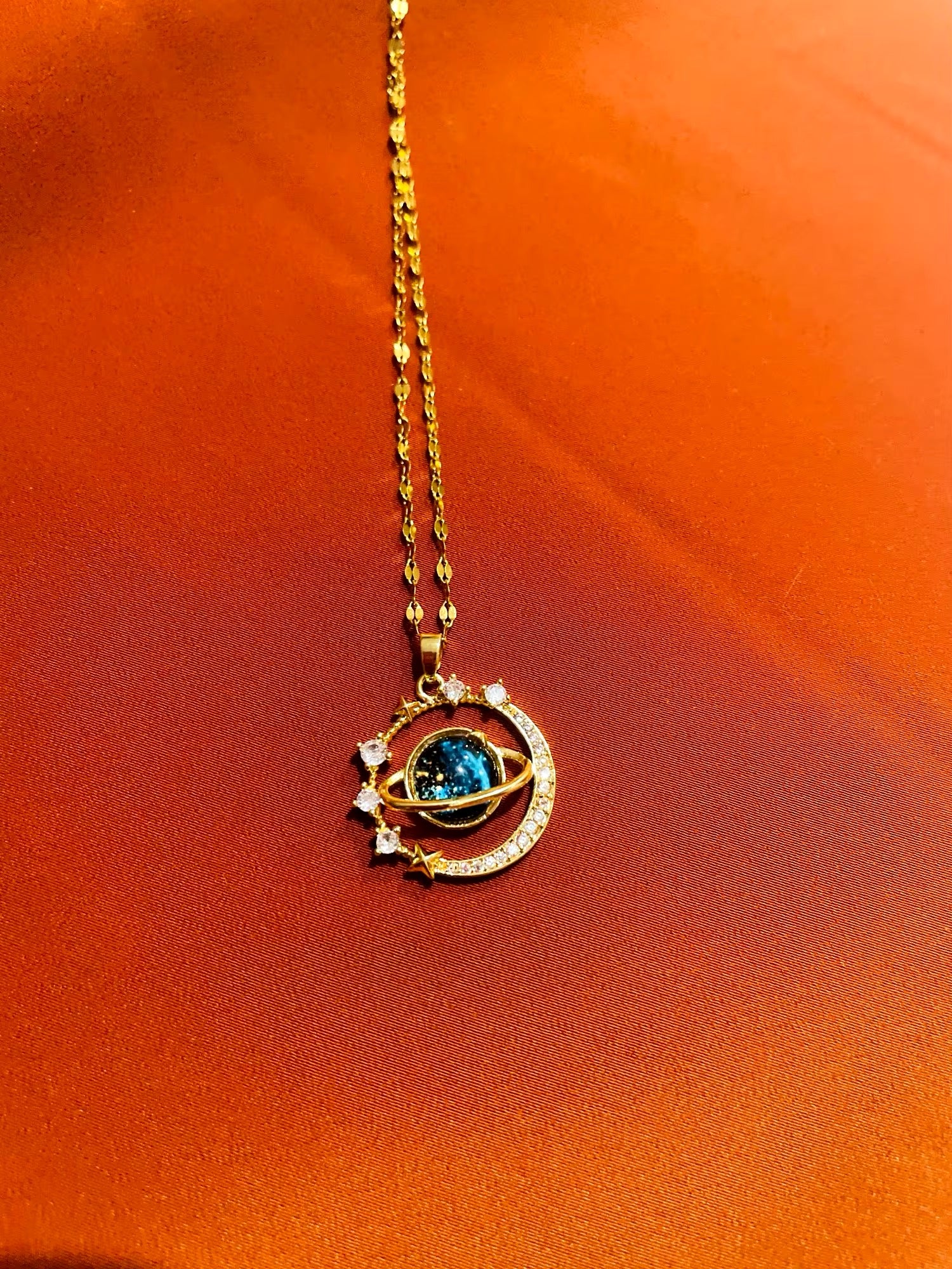 COLLAR SATURNO ENCERRADO CIELO ESTRELLADO ELEGANTE CRISTALES DE CIRCONIA