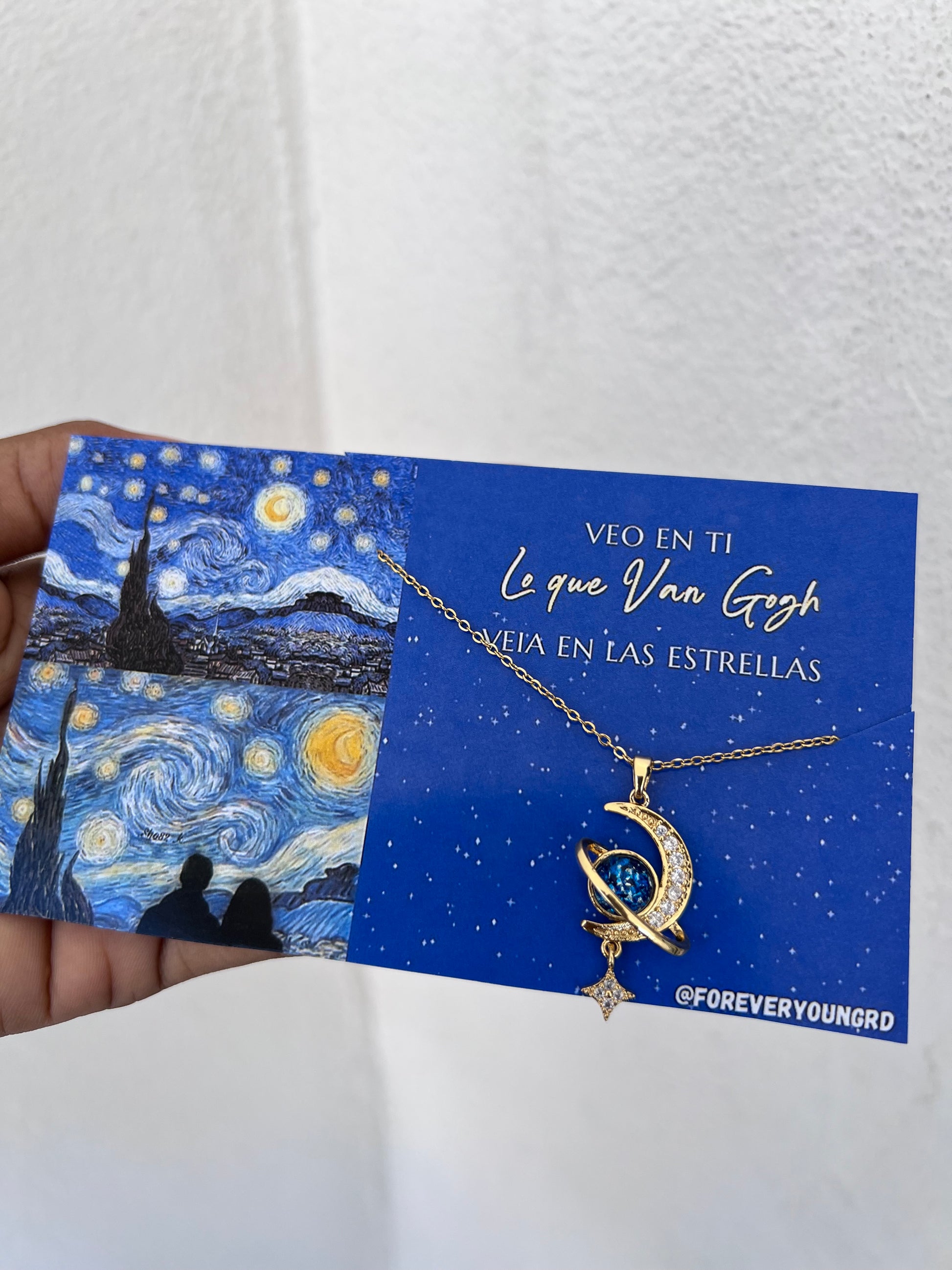 COLLAR LUNA SATURNO CIELO ESTRELLADO ELEGANTE CRISTALES DE CIRCONIA