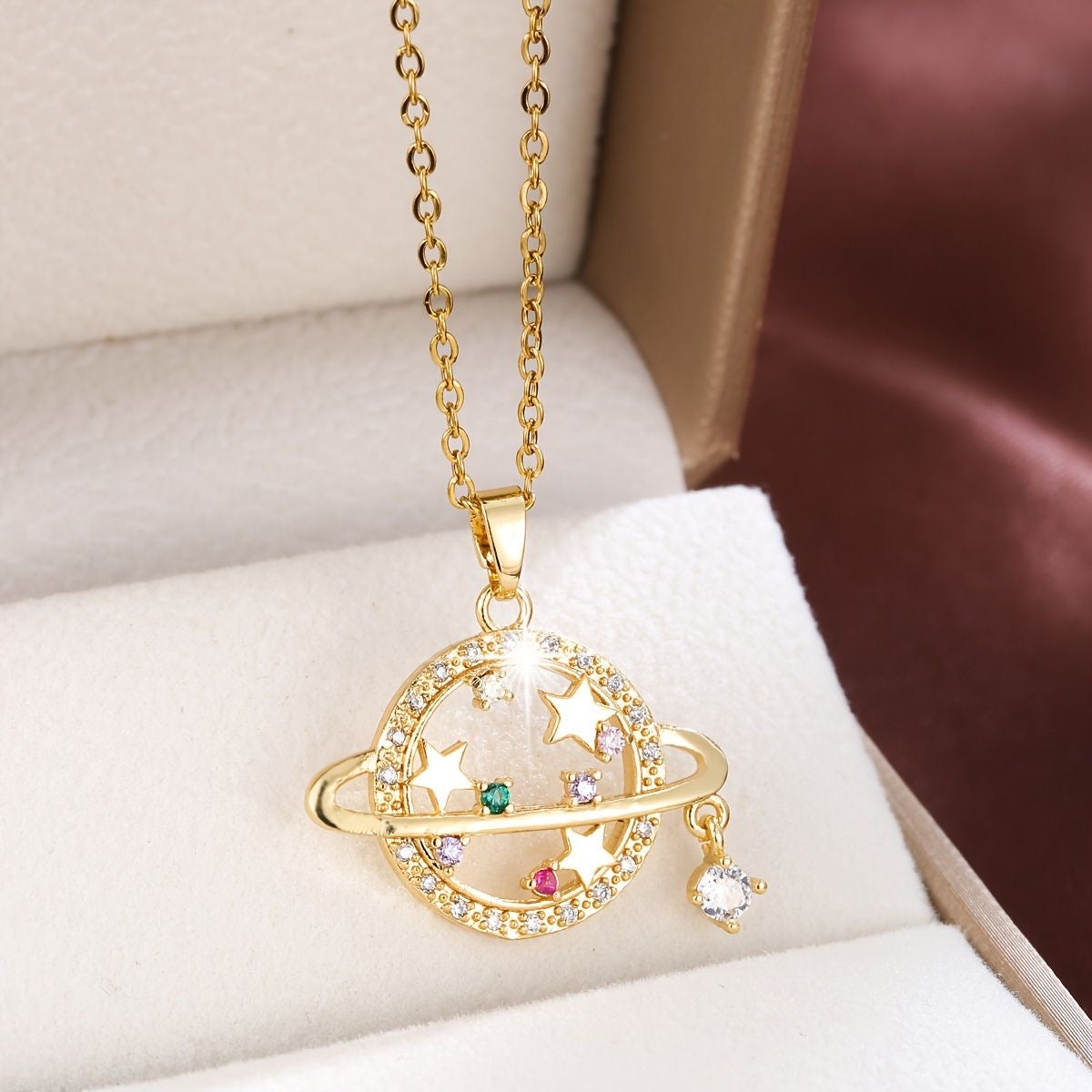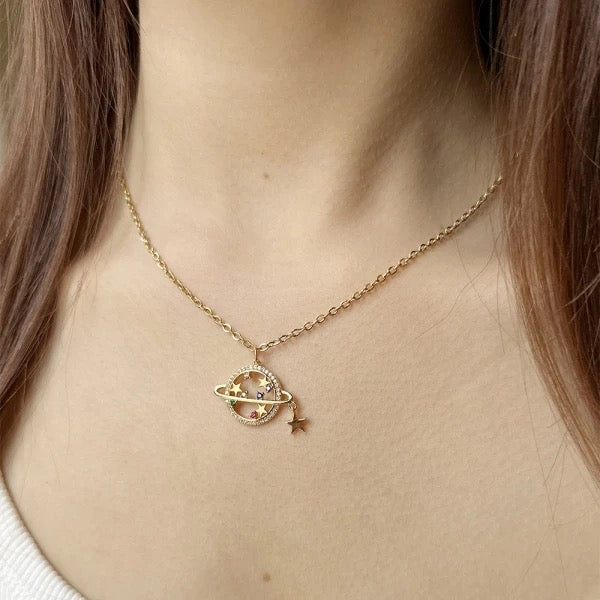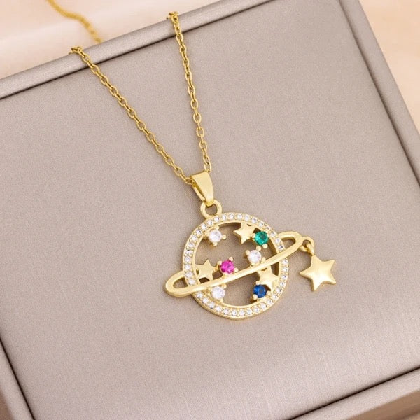 COLLAR SATURNO COLORIDO ELEGANTE CRISTAL DE CIRCONIA
