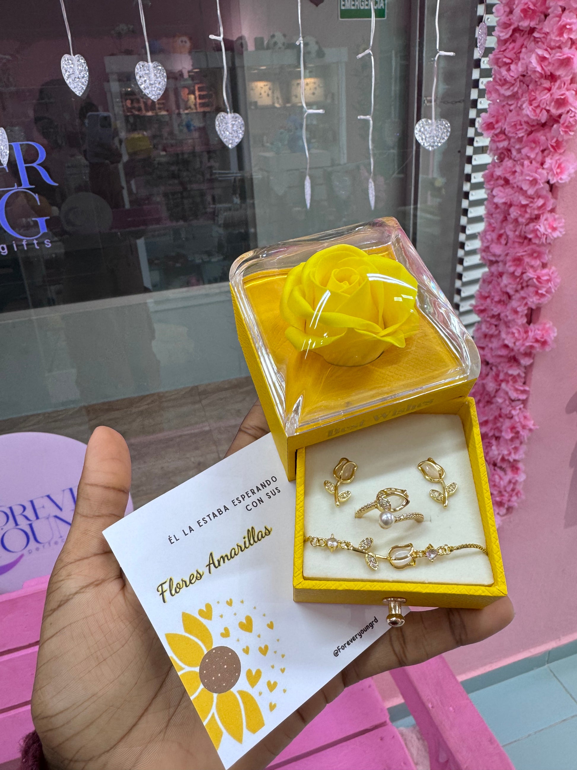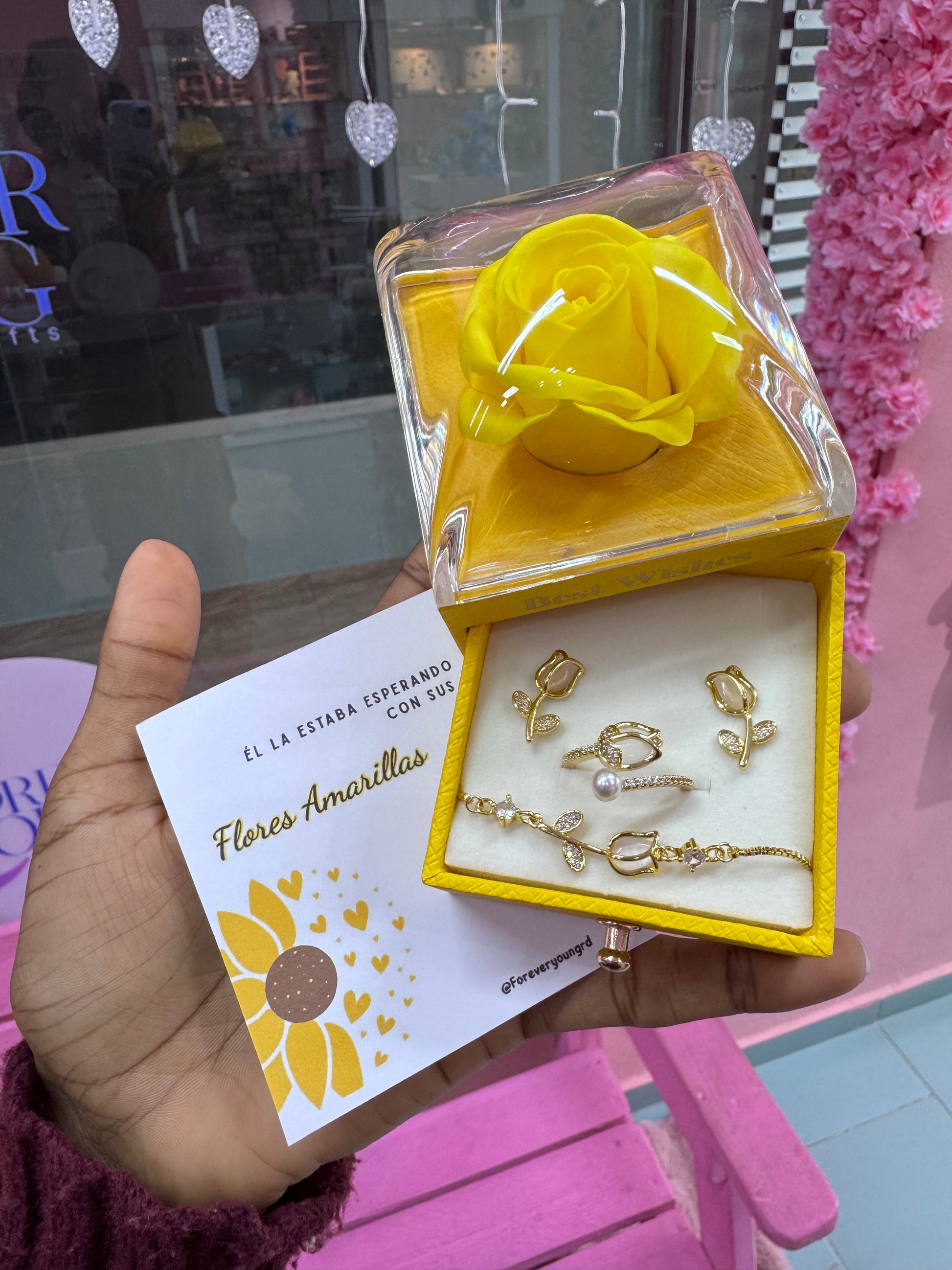 COMBO COLLAR ANILLO Y BRAZALETE TULIPÁN ELEGANTE CRISTAL DE CIRCONIA